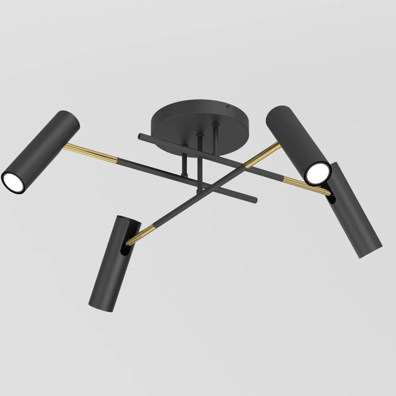 Sufitowa lampa do salonu AXION to oświetlenie, którego funkcjonalny design pozwala rozjaśnić przestronne wnętrze. Wyróżniającymi ją cechami są: lekka konstrukcja wykończona czarnym, matowym kolorem i złote zabarwienie ramion.