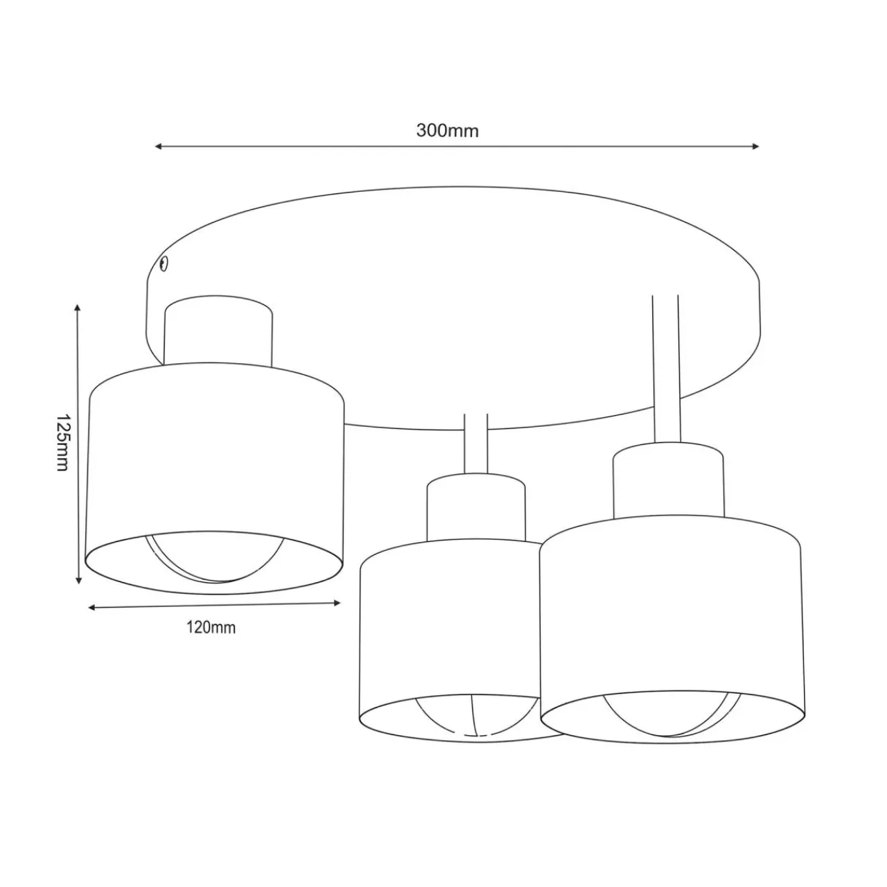 Model lampy sufitowej PARKLA DREK posiada oprawę dla 3 żarówek typu E27 o mocy maksymalnej 15W.