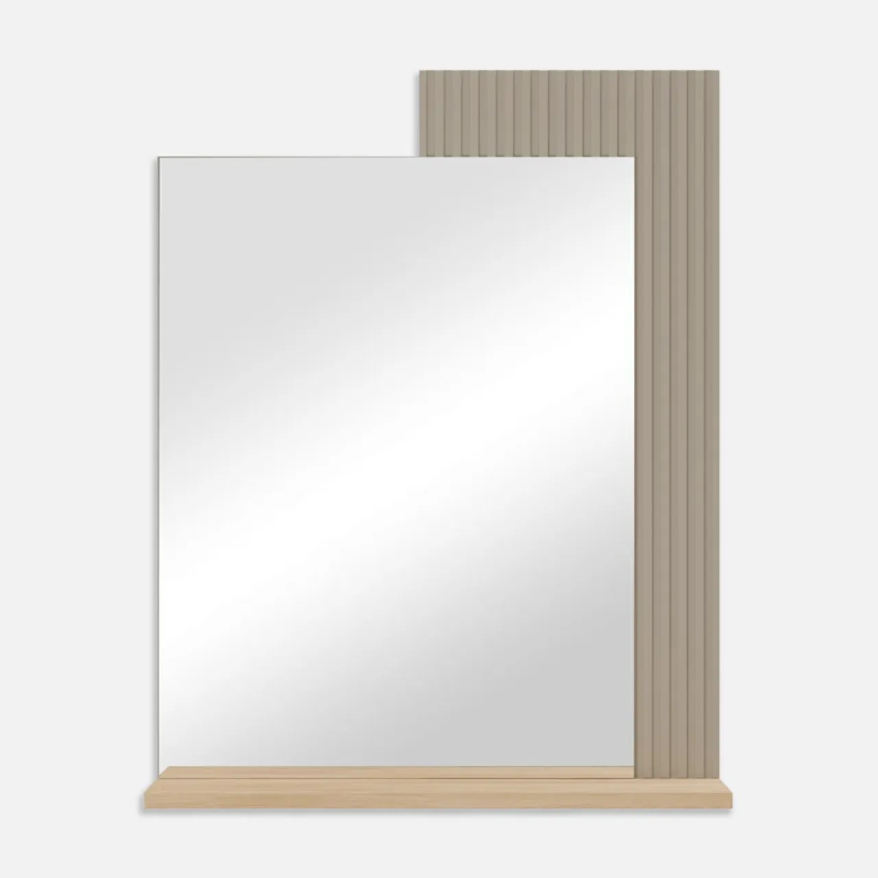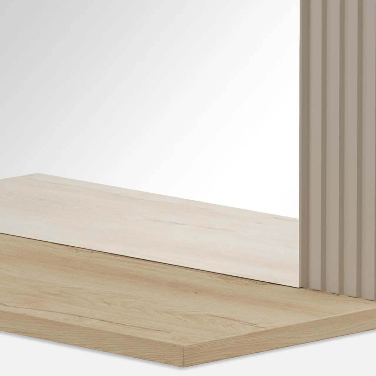 - Ryflowane fronty w kolorze taupe idealnie zgrywają się z korpusami. Wykończone są laminatem i folią.