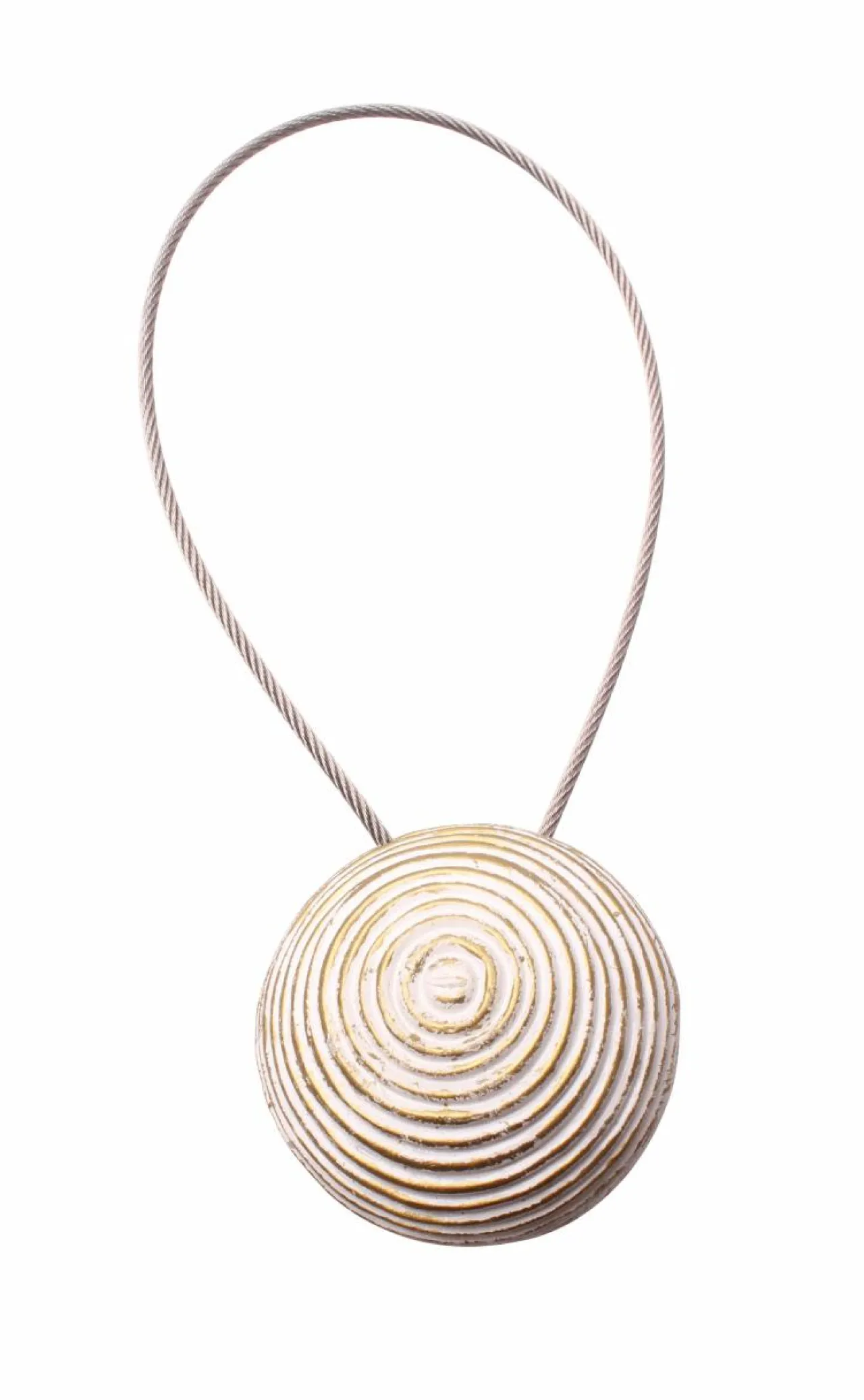 Dekoracyjny upinacz do zasłon z magnesem w elegancki sposób przytrzyma i udrapuje zasłonę. Stalowa, solidna linka zapewni stabilne utrzymanie grubych materiałów i daje możliwość upięcia tkaniny na wiele sposobów.