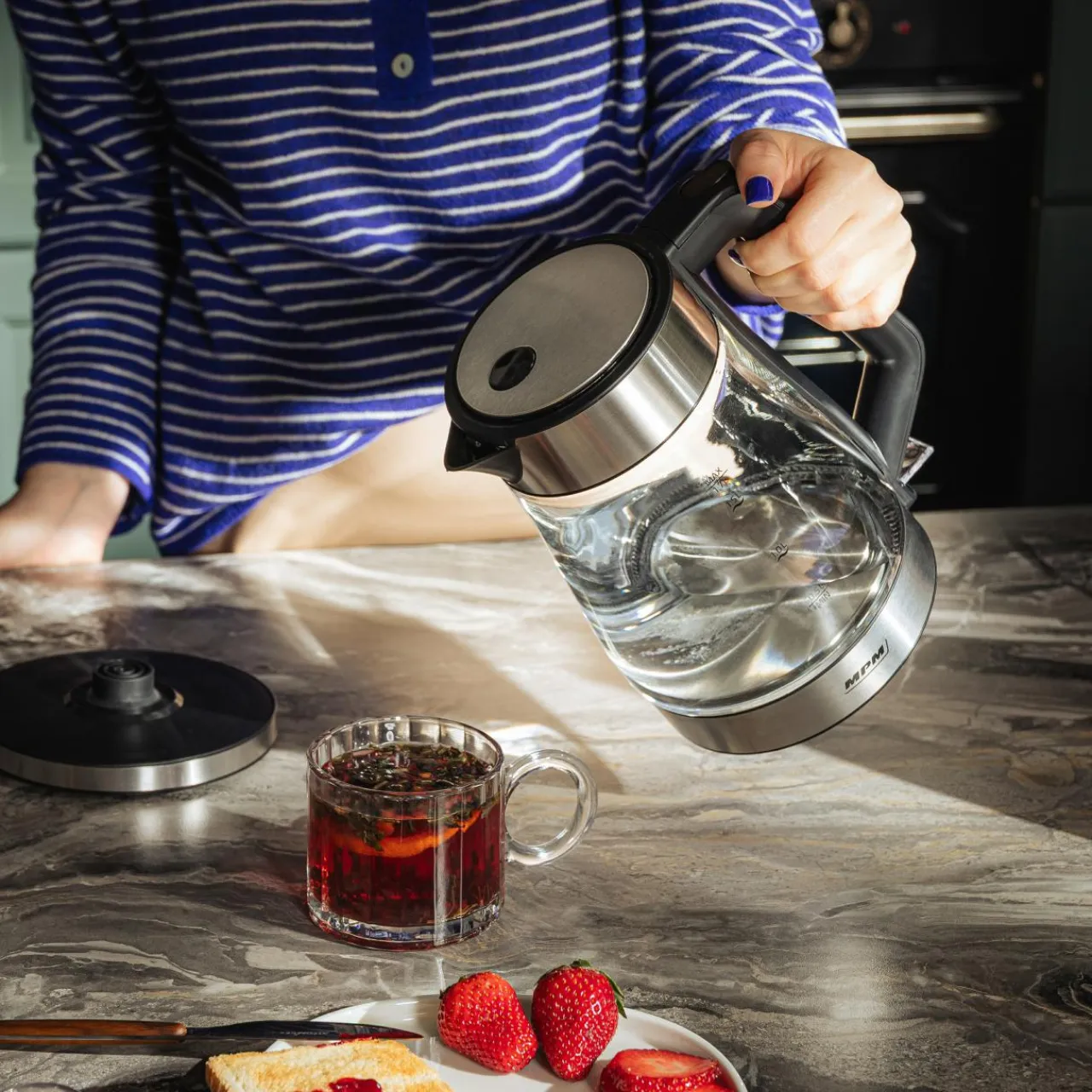 Pojemność czajnika 0,5-1,7L wody jest wystarczająca na kilka kubków herbaty lub kawy.