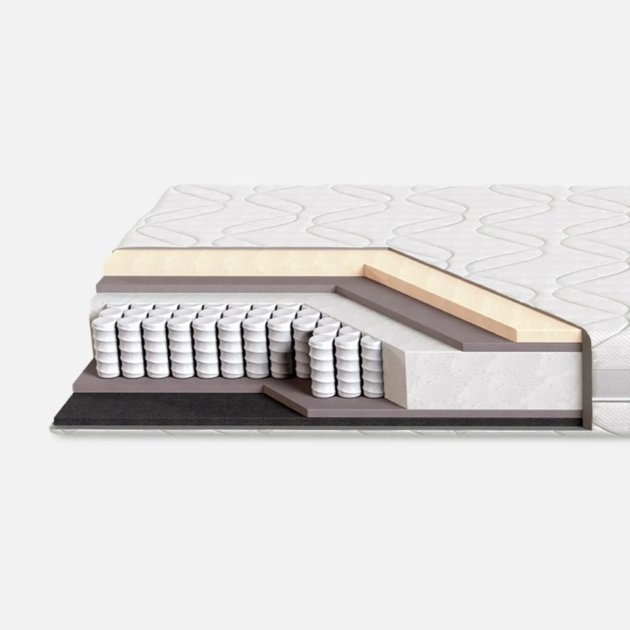 - W środku materaca mieszczą się sprężyny kieszeniowe. Każda z nich umieszczona jest w osobnej kieszonce, dzięki czemu pracują osobno, a materac posiada podwyższony komfort użytkowania. Dopasowuje się do postury ciała, dba o prawidłowe ułożenie kręgosłupa. Sprężyny kieszeniowe będą dobrym wyborem dla par z różnicą wagi.