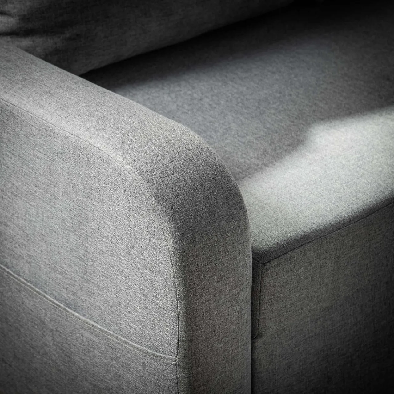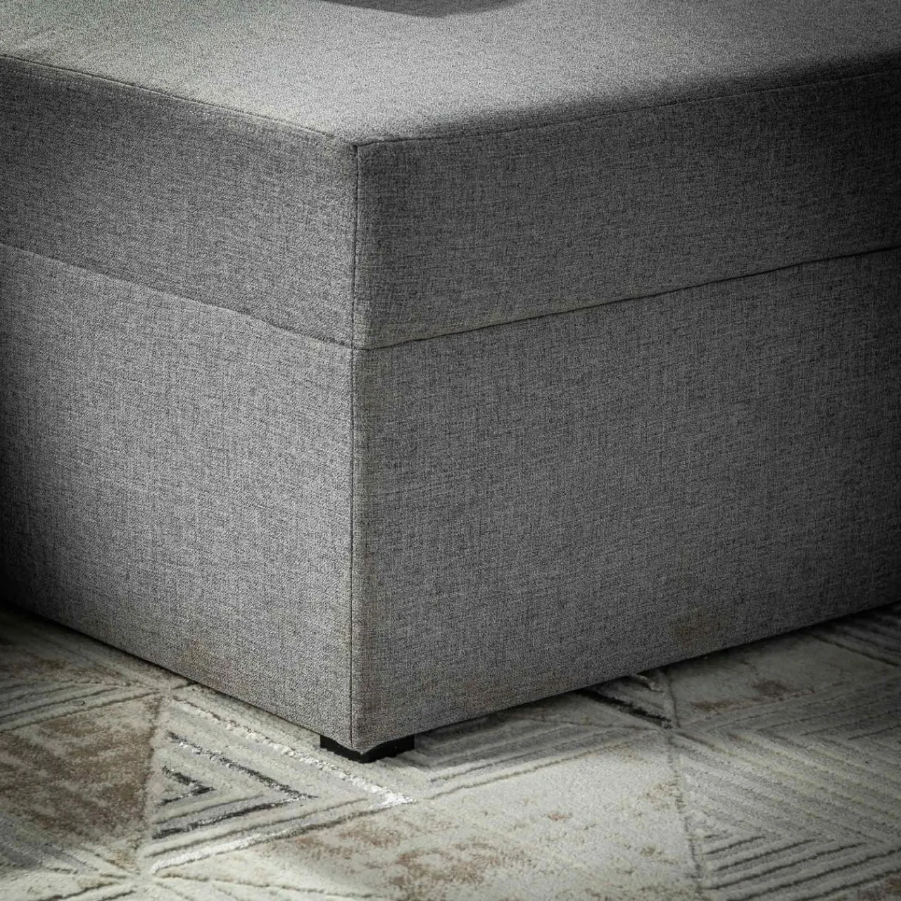 Narożnik został wykończony tkaniną RINO – materiałem o drobnym splocie, w którym nici przeplatają się między sobą, tworząc niejednolitą, unikalną kompozycję. Tkanina dodatkowo pokryta jest specjalną warstwą hydrofobową, która chroni przed szybkim przesiąkaniem płynów.