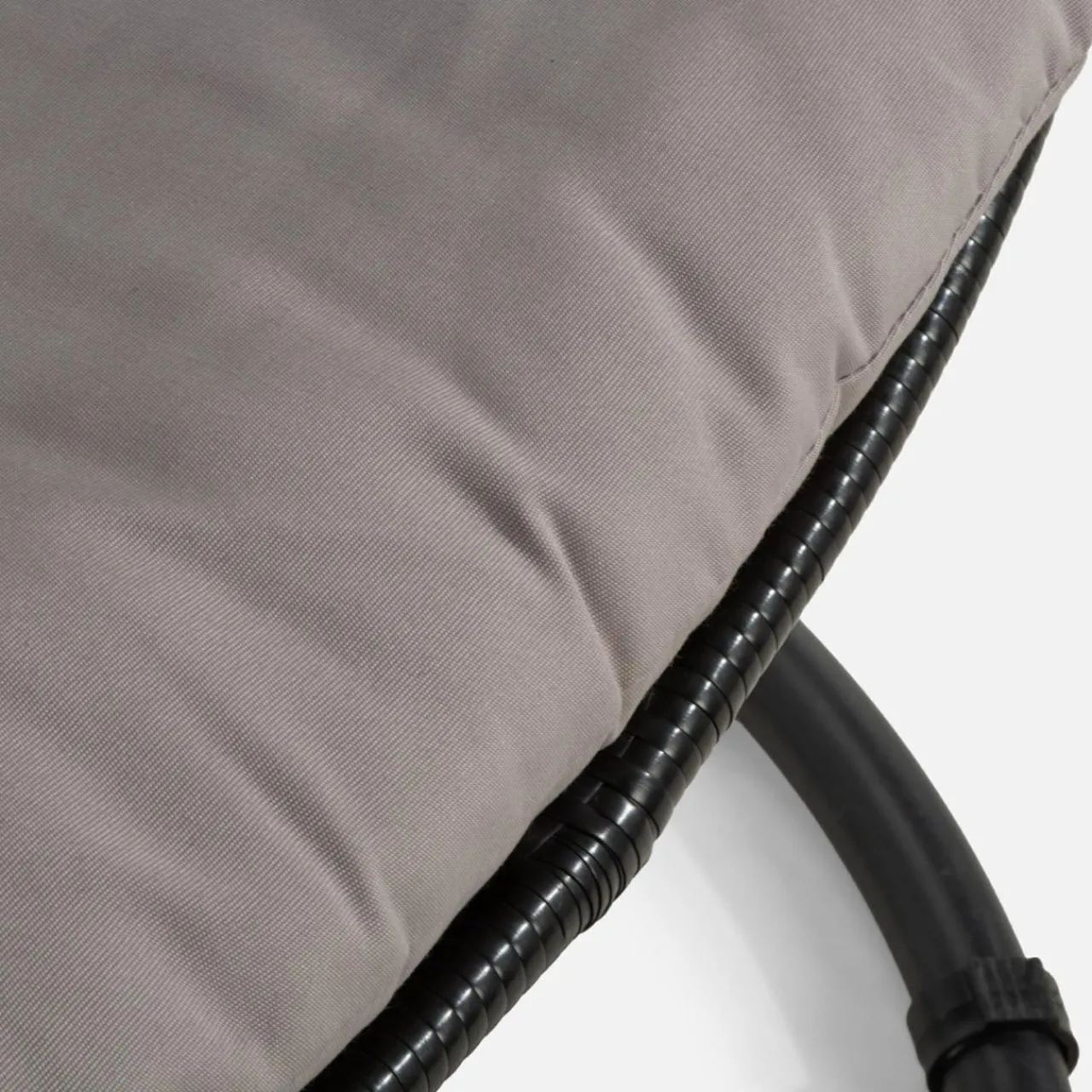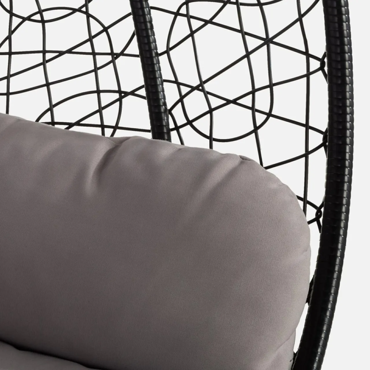 Owalny kształt siedziska – przypominający kultowe fotele „jajo” – zapewnia poczucie intymności i przyjemnego otulenia.