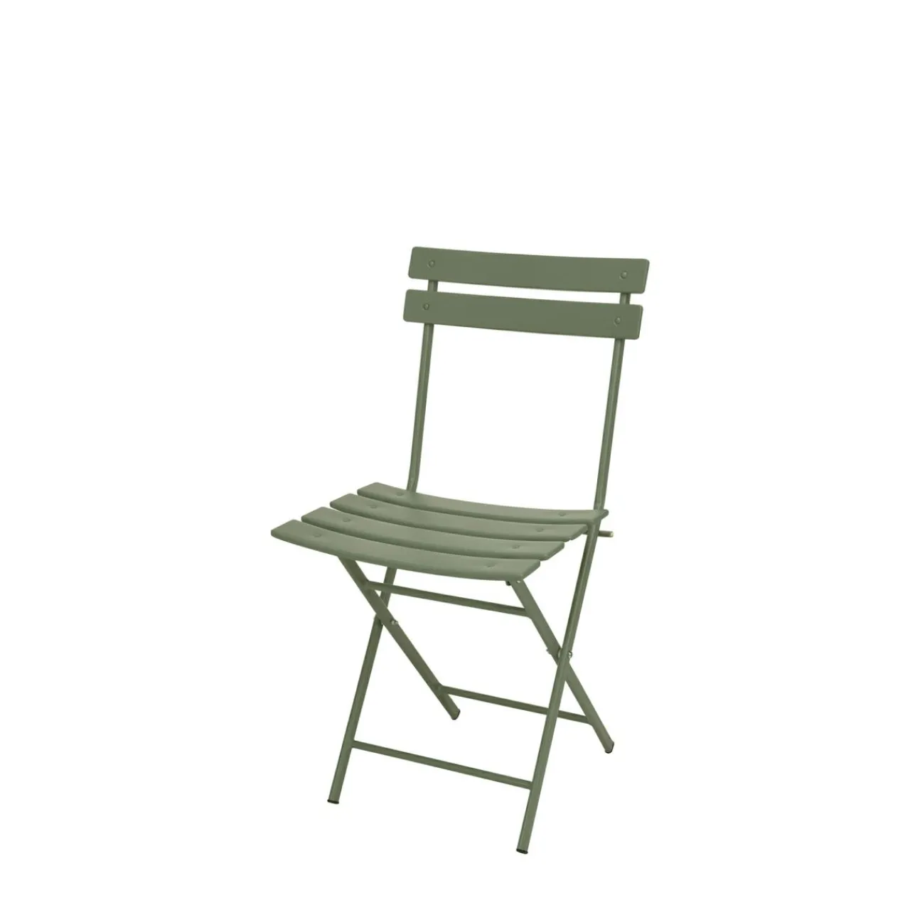 Zielone krzesło ogrodowe PEONY będzie pasować do pomarańczowego stolika, beżowego lub czarnego zestawu w Twoim ogrodzie.