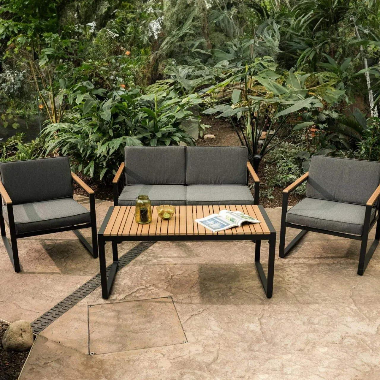 - Komplet będzie świetnym rozwiązaniem do szerokiego balkonu, na taras lub do ogrodu w industrialnym stylu.