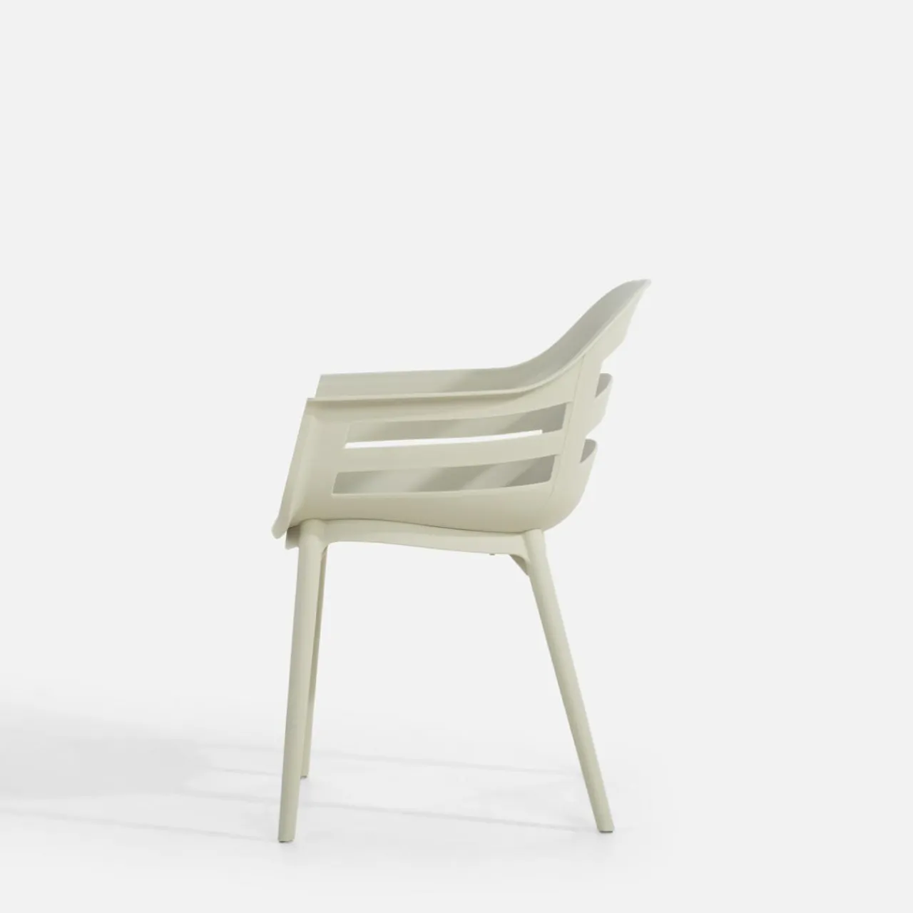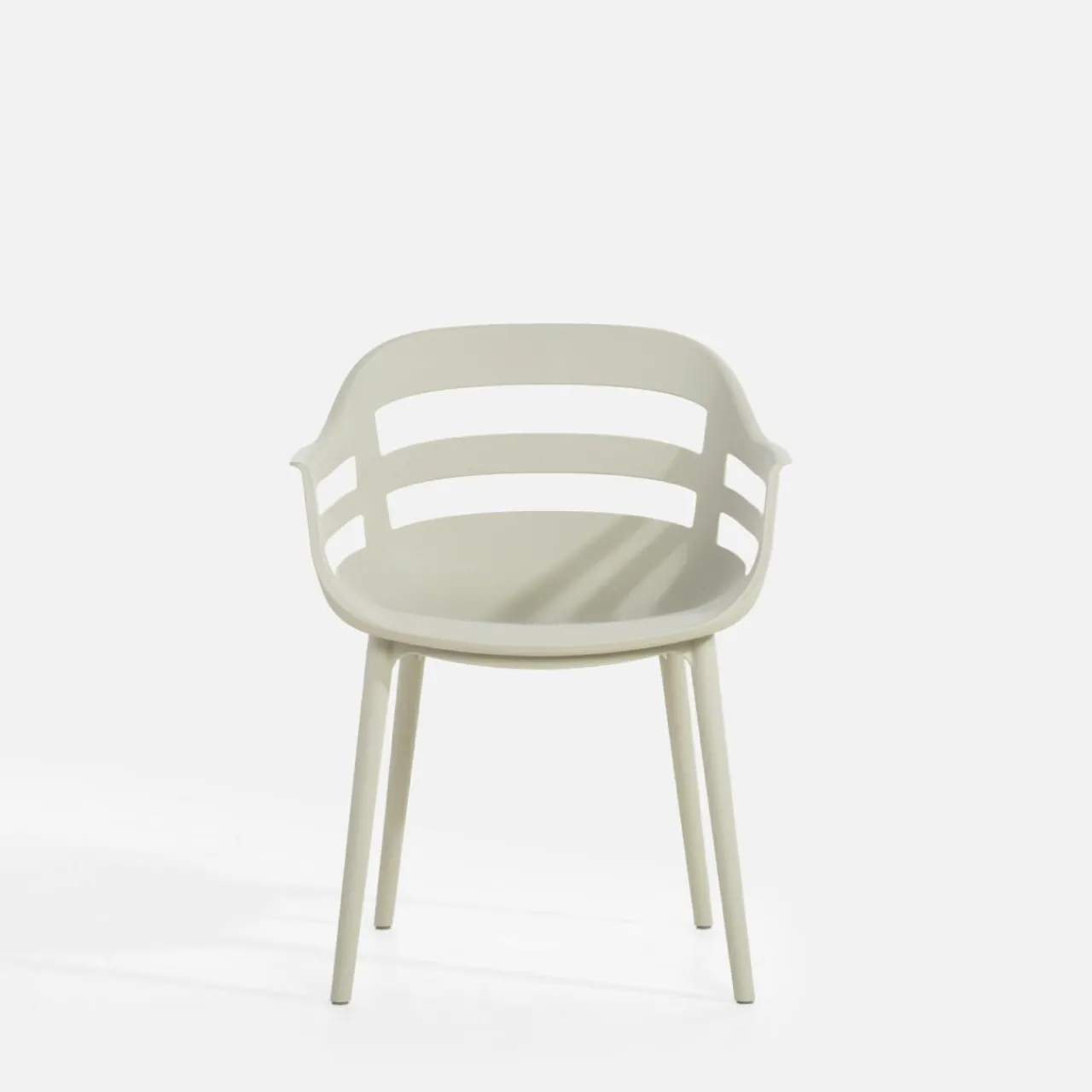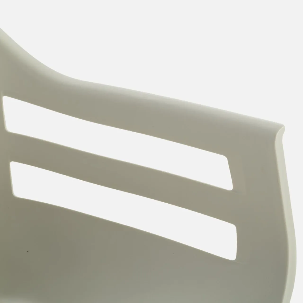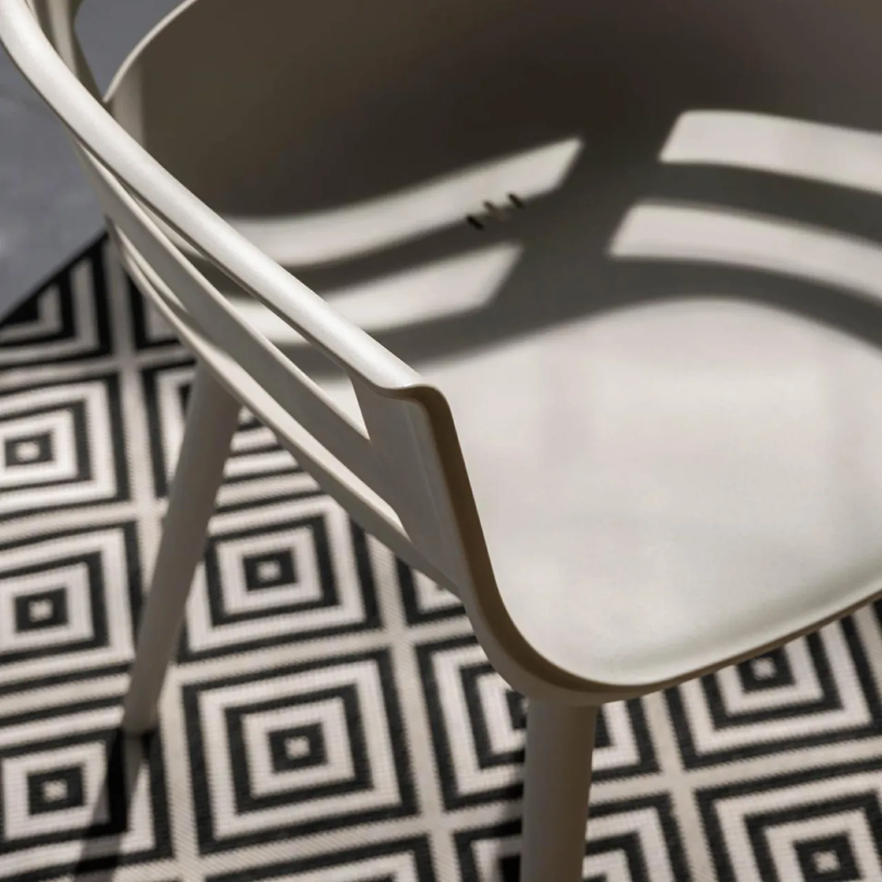 - Przyjazny dla oka design — krzesło prezentuje się lekko dzięki budowie z przepustkami. Postaw je w mniejszym ogrodzie lub na balkonie, nie zaburzy wyglądu letniego ogródka.