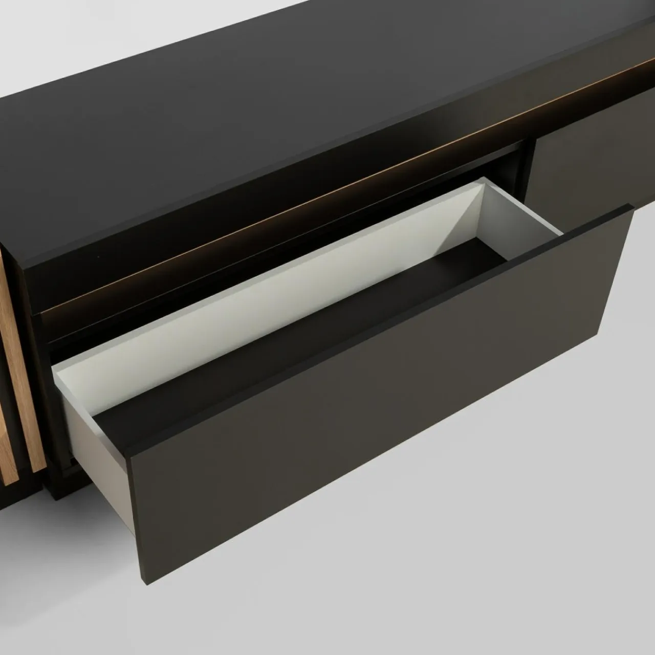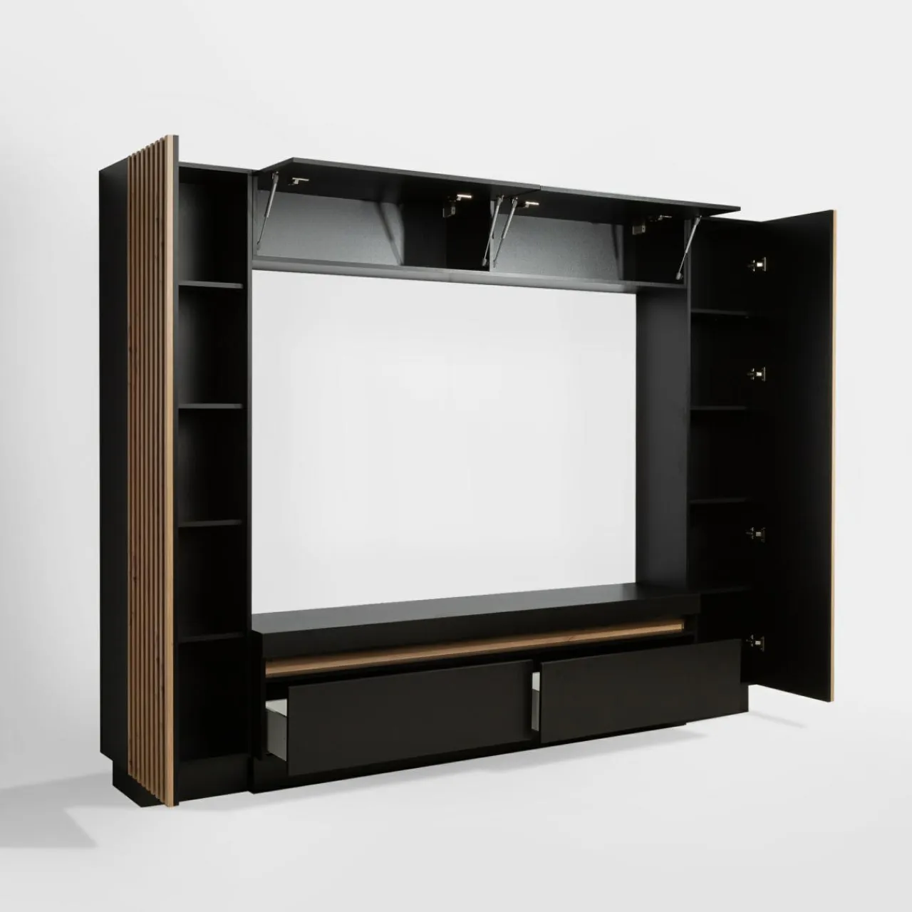 - W bocznych szafkach znajduje się aż 10 wnęk, do których włożysz dekoracje, tekstylia domowe czy akcesoria RTV.