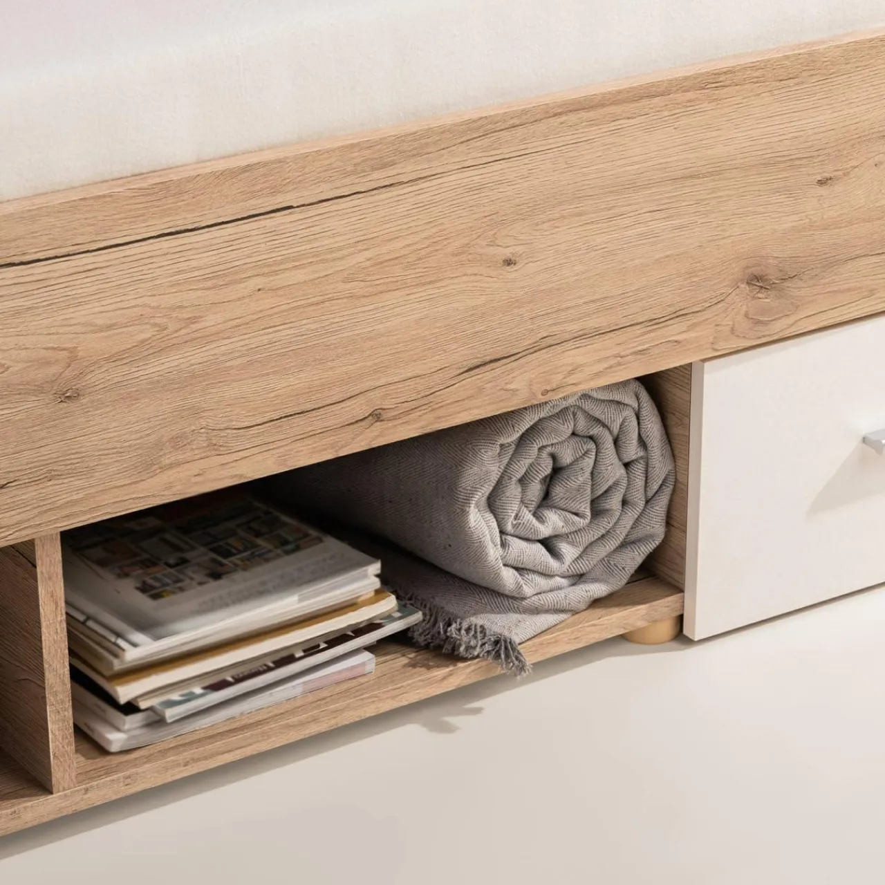 - Łóżko nie zawiera stelaża i materaca. Należy dobrać je osobno, zgodnie z własnymi preferencjami.