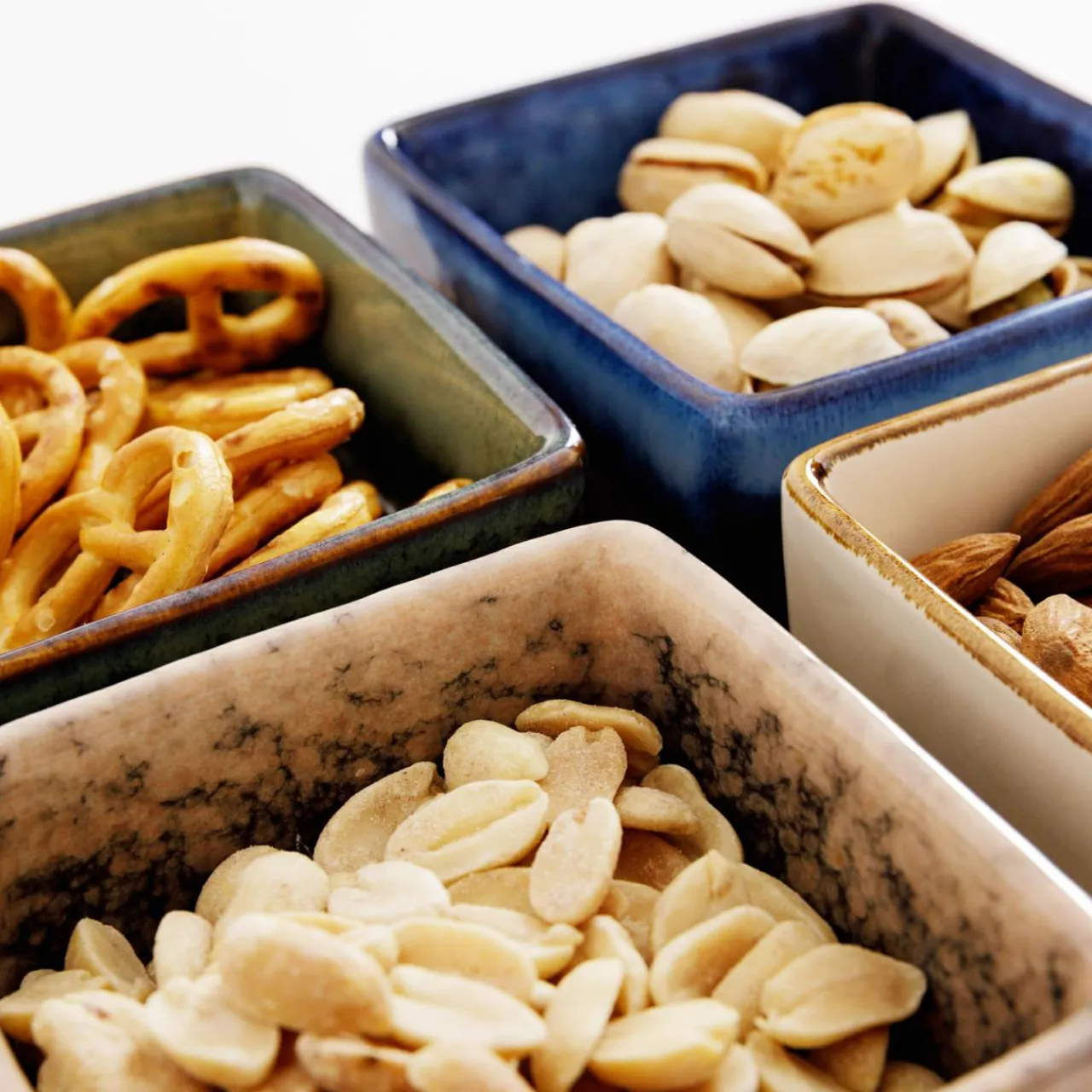 Miski, Patery I Półmiski|inny Komplet 4 miseczek na kwadratowej bambusowej podstawie 19×19 cm