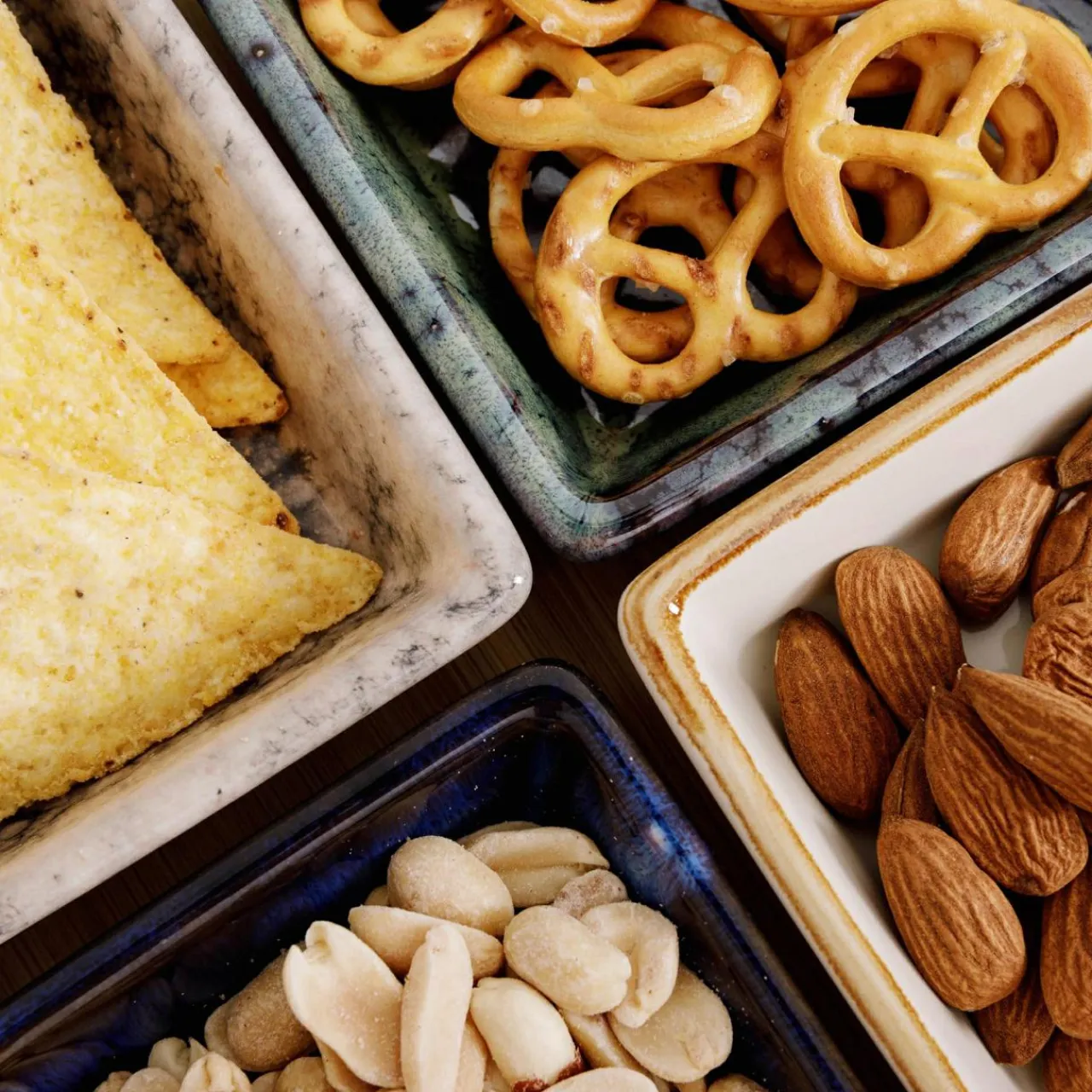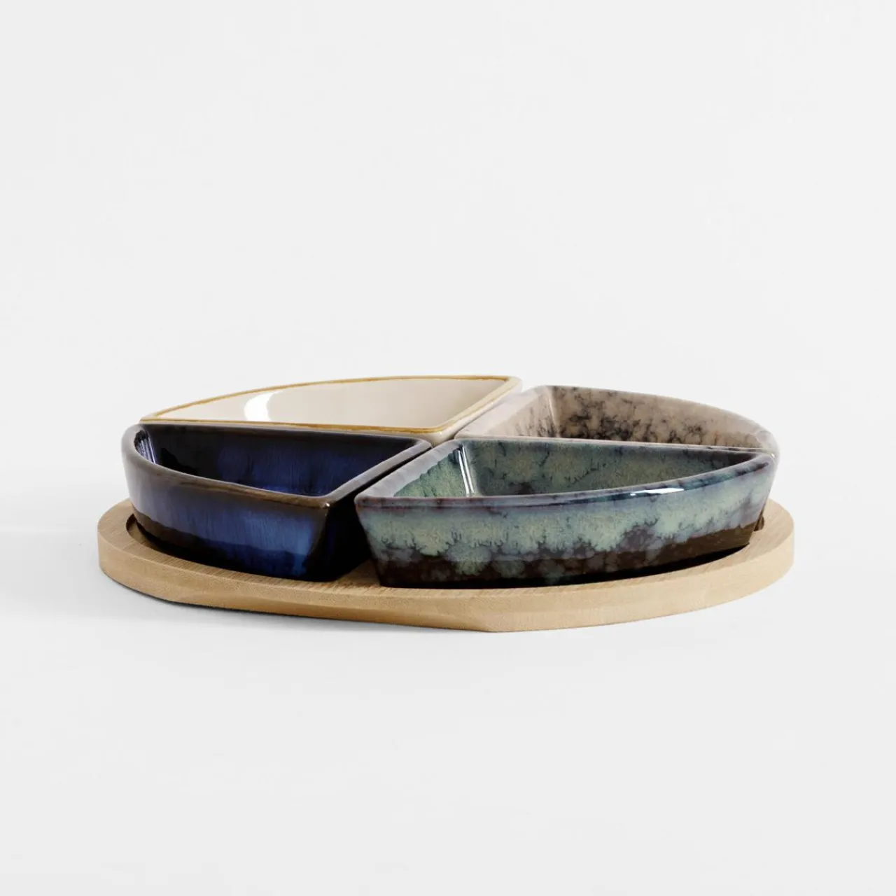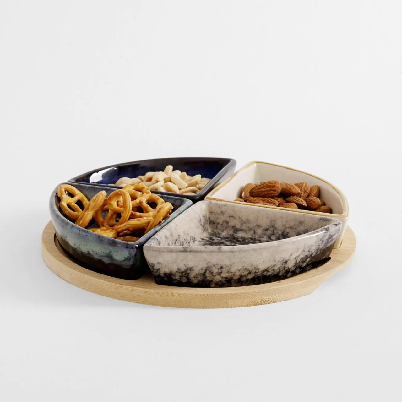 Miski, Patery I Półmiski|inny Komplet 4 miseczek na okrągłej bambusowej podstawie 21,5 cm