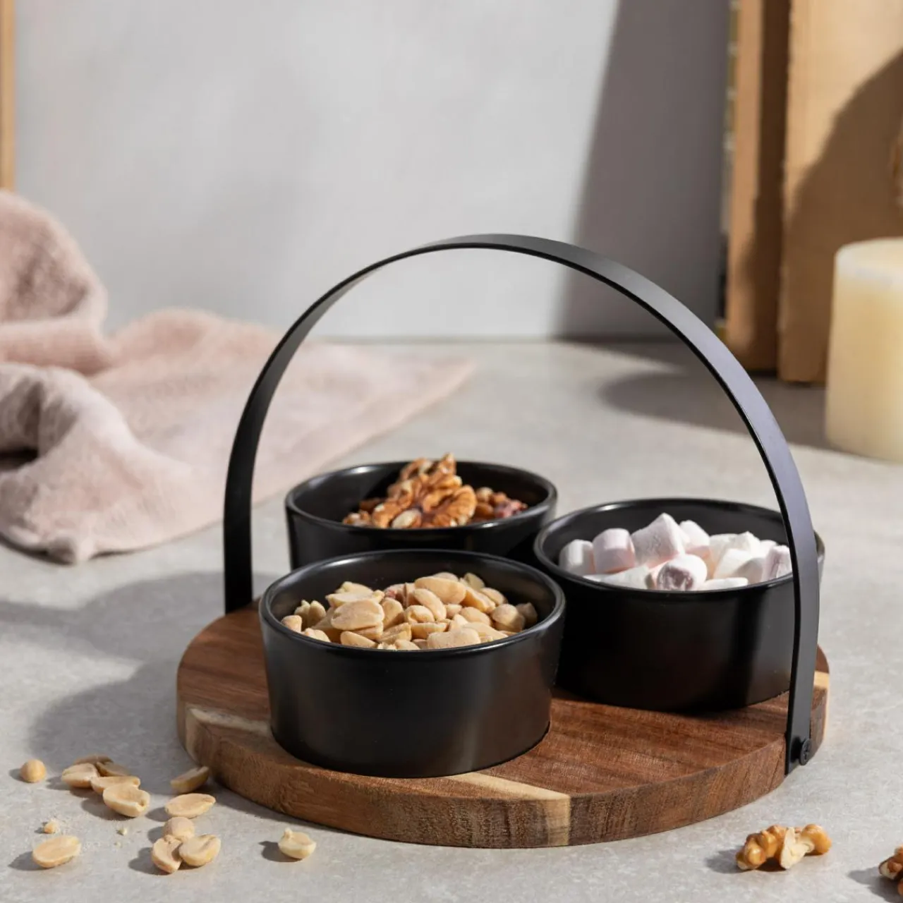 Miski, Patery I Półmiski|inny Zestaw 3 miseczek na akacjowej podstawie z uchwytem 20 cm