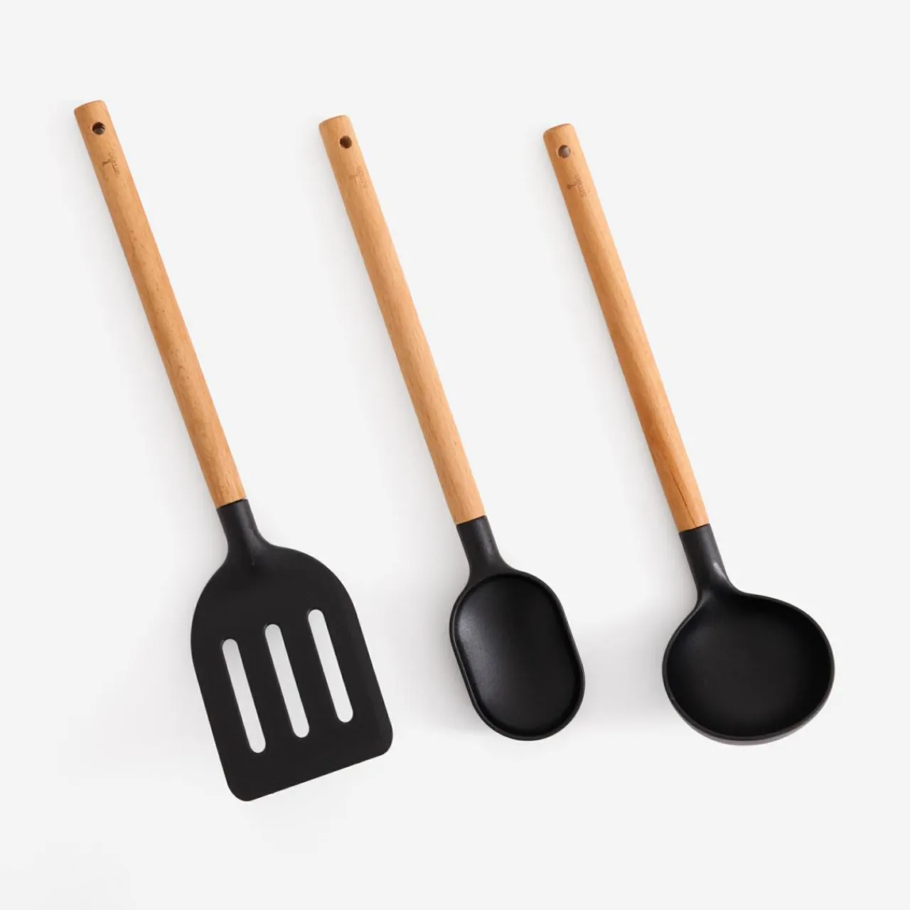 - Przybory kuchenne wykonane z drewna bukowego i nylonu termoplastycznego to doskonałe dopełnienie zestawu, w trosce o wyjątkowe powłoki.