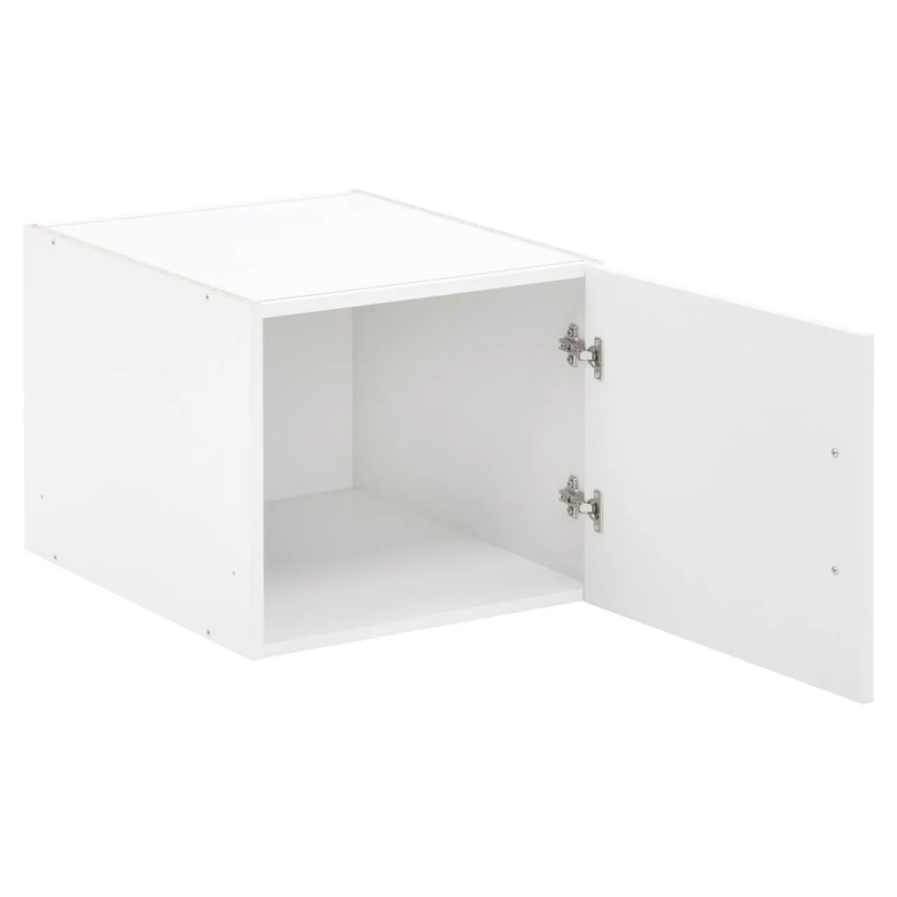 Szafka zamykana jest na 1 białe drzwi. Podłużny, klasyczny uchwyt ułatwia dostanie się do wnętrza.