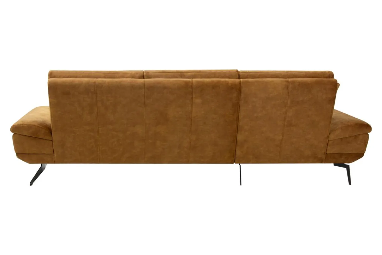 - Narożnik w miodowym kolorze dobrze zaprezentuje się w eleganckim, nowoczesnym salonie. Zestaw go ze szklanymi, kryształowymi lub złotymi dodatkami, a uzyskasz efekt luksusu.
