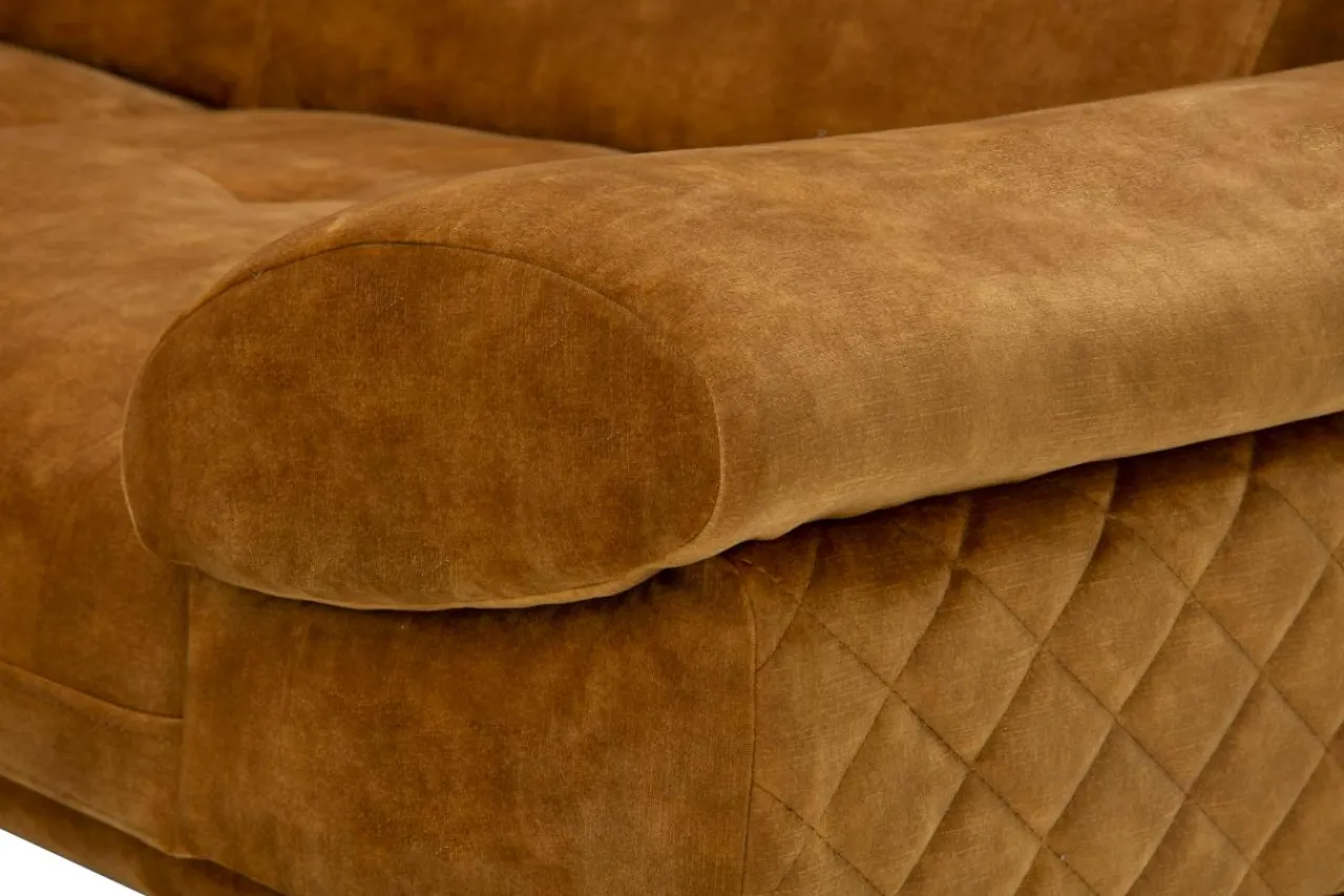 Wszystko dzięki połyskującej, welurowej tkaninie w odcieniu miodowo-złotym.