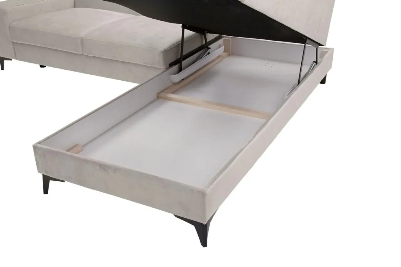 - Narożnik jest wyposażony w pojemnik na pościel;