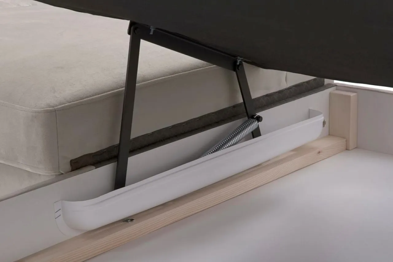Stelaż pod siedziskiem wysuwamy i podnosimy za pomocą uchwytu. Mebel nie wymaga odsuwania od ściany. Idealny do okazjonalnego spania.