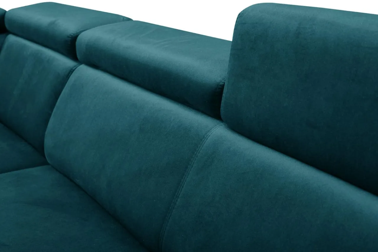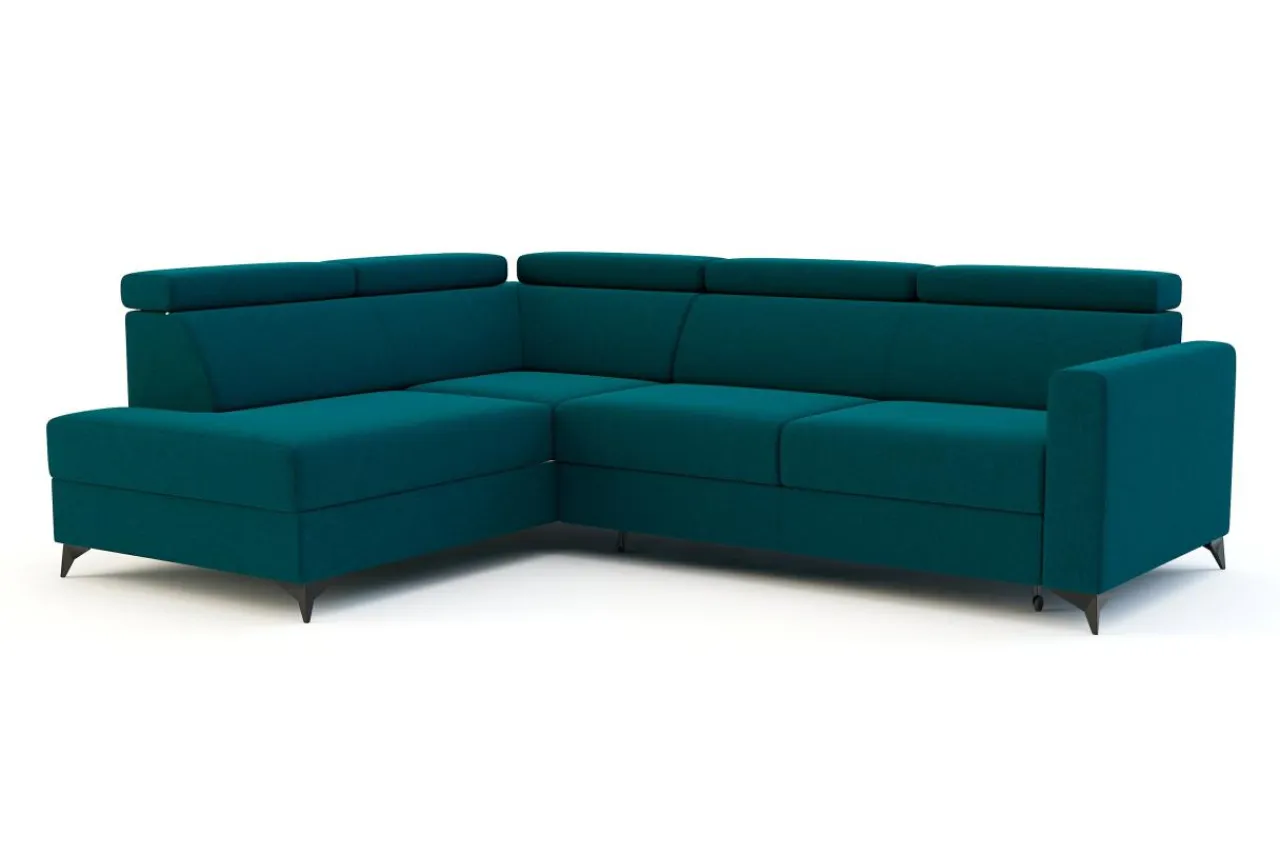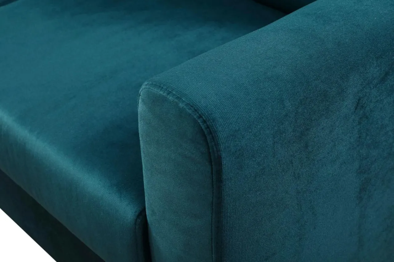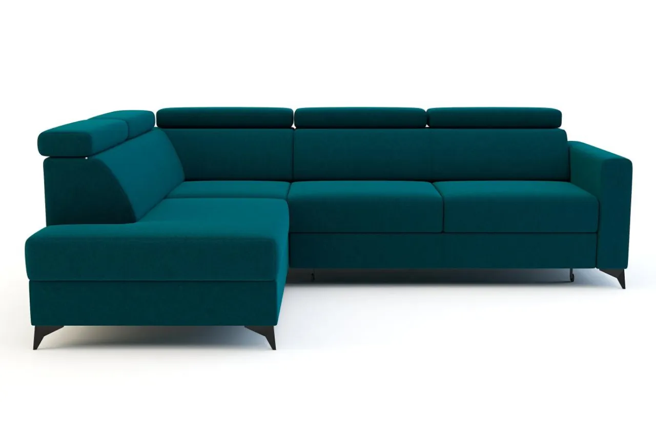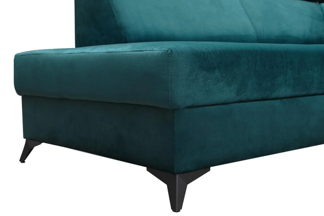 - wysokie nóżki mebla – metalowe, czarne, ustawione pod lekkim skosem sprawiają, że bryła narożnika jest wizualnie lżejsza i lepiej komponuje się z nowoczesnym wystrojem wnętrza
