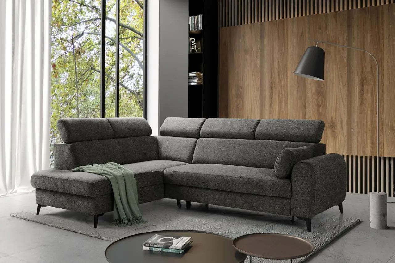 Narożnik rozkładany z regulowanymi zagłówkami ciemnoszary TRENTO lewy