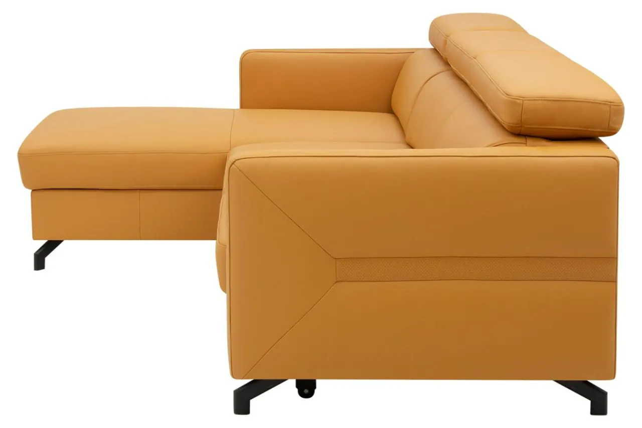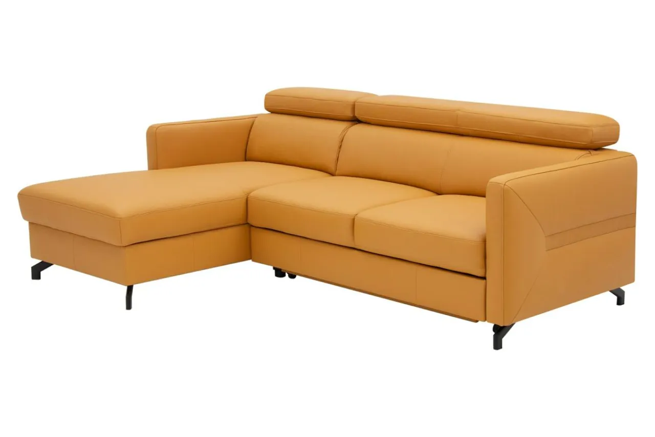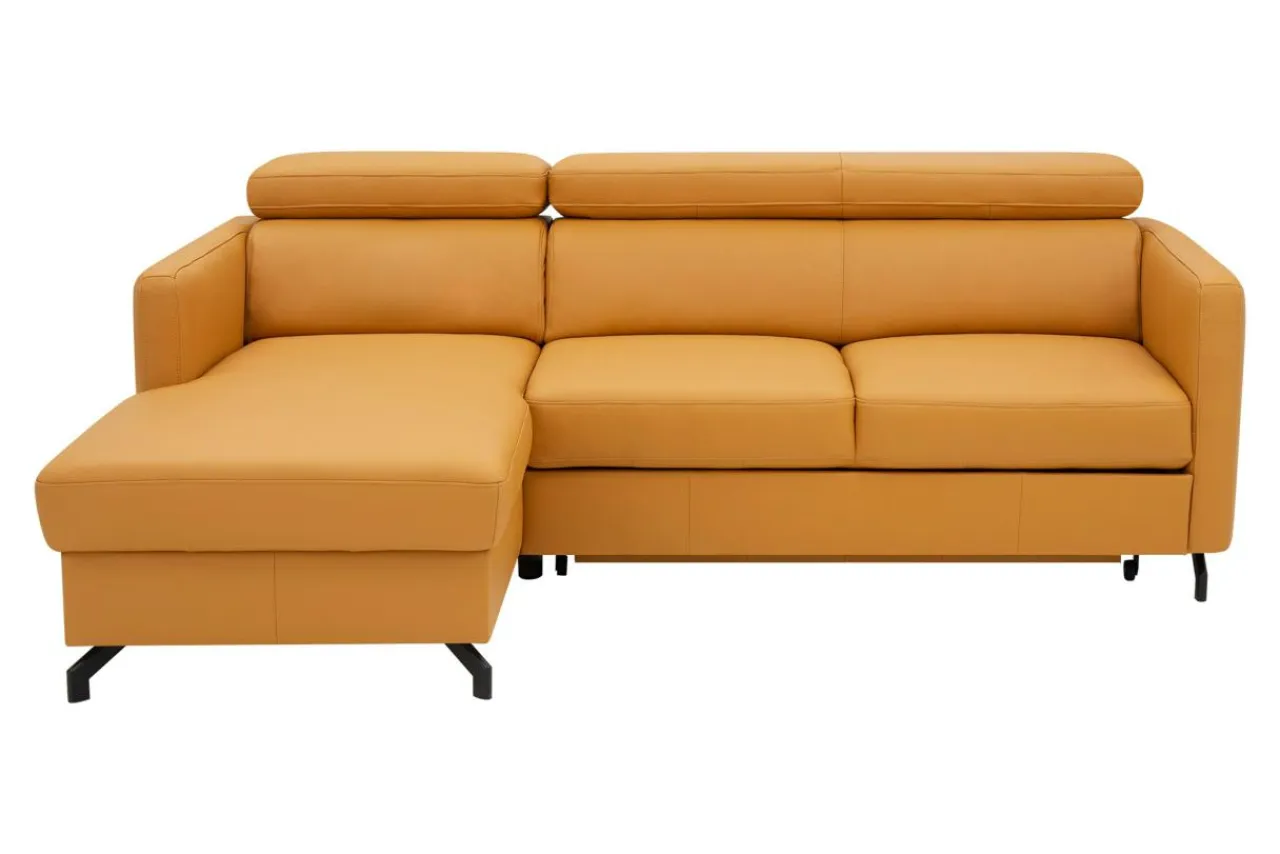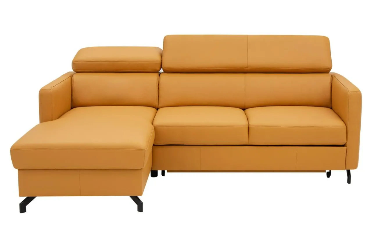 - Narożnik obity jest skórą naturalną w pomarańczowym kolorze.