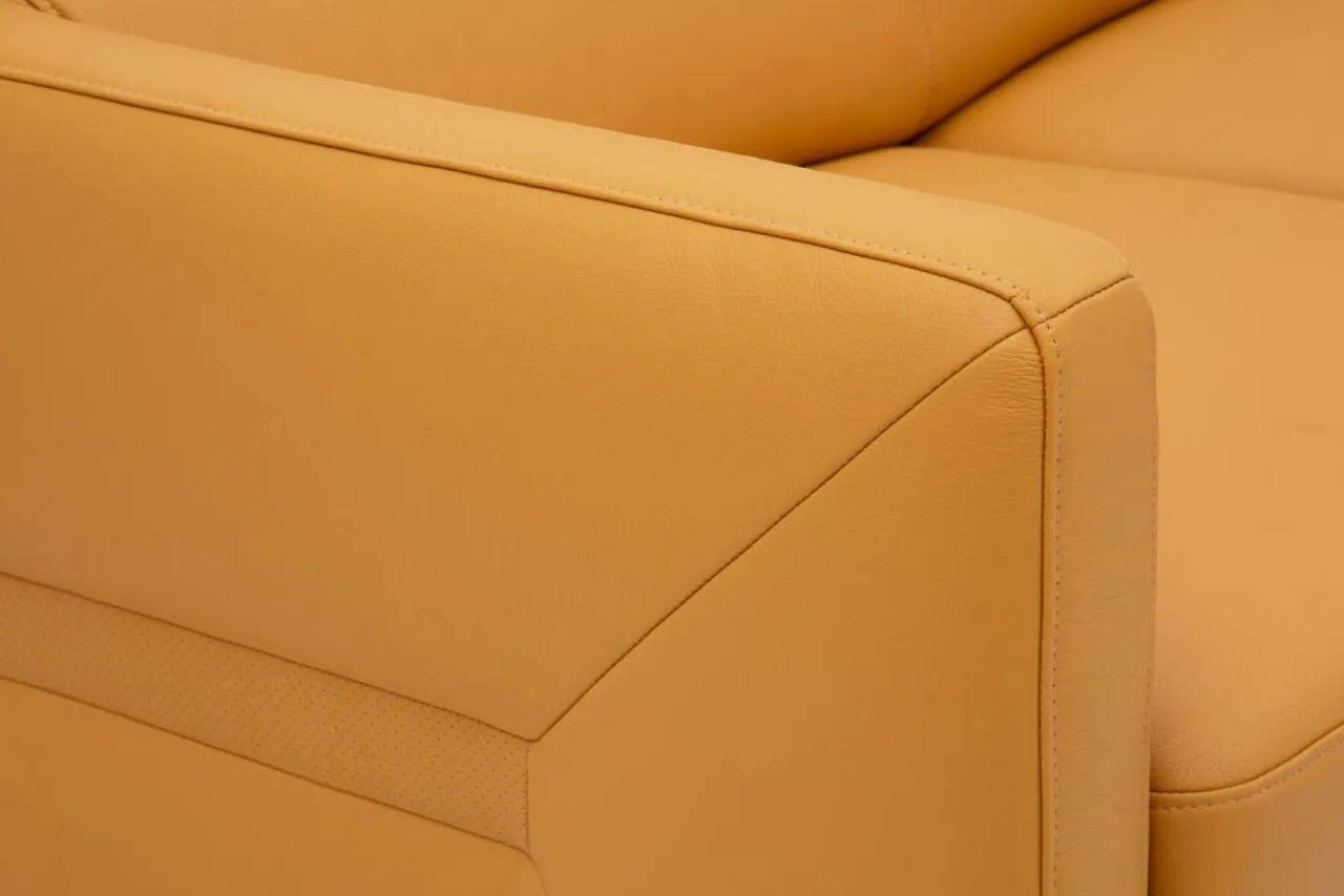 - Aplikacja z boku narożnika wykonana jest w tym samym odcieniu skóry perforowanej – która nadaje mu modernistyczny akcent.