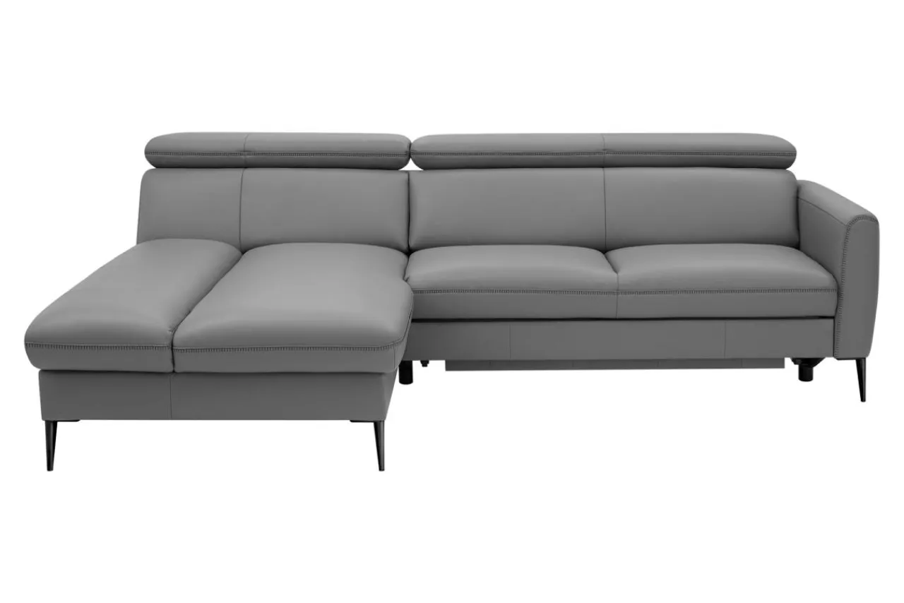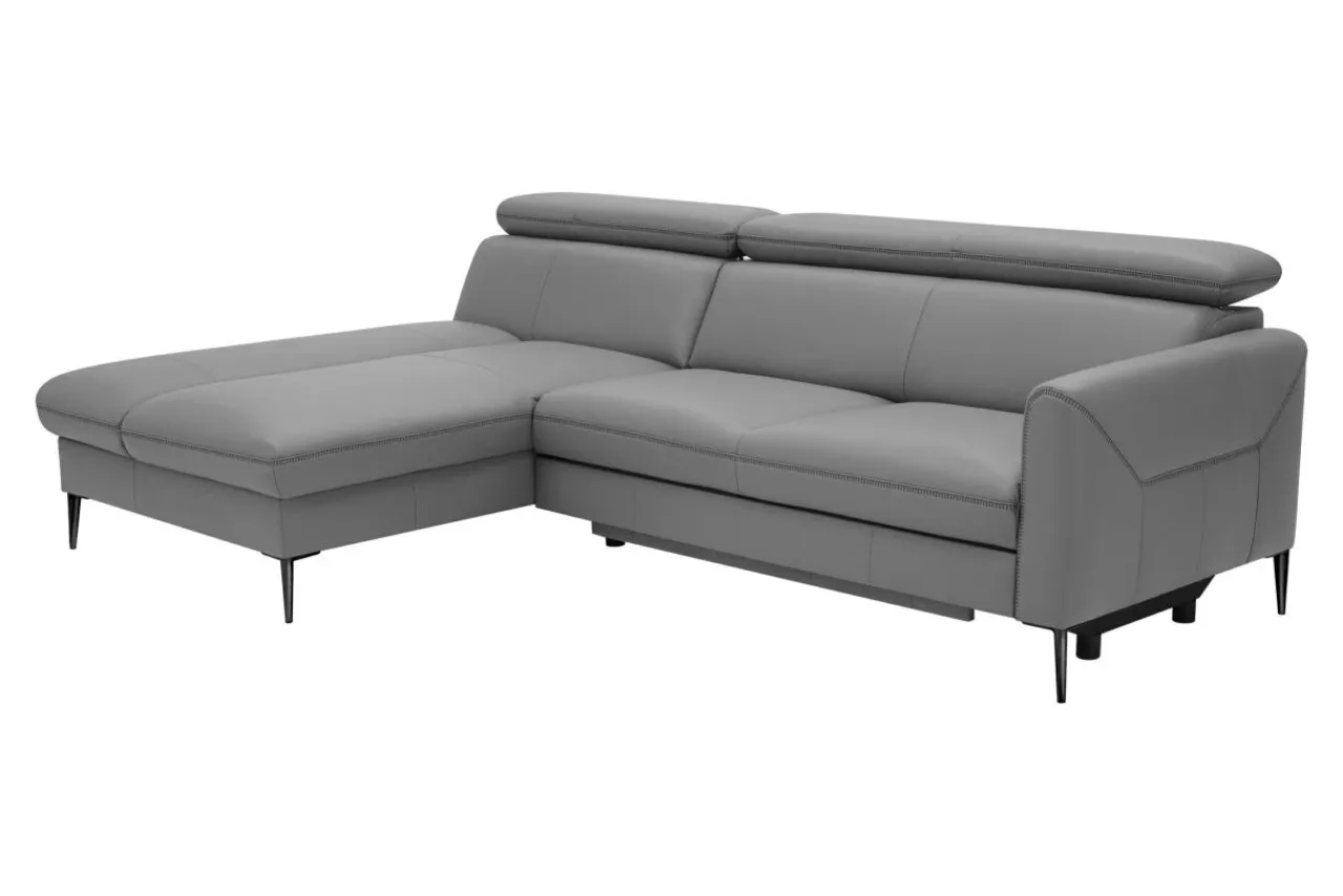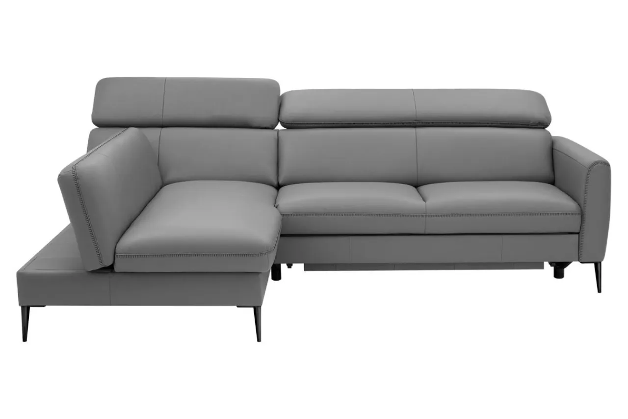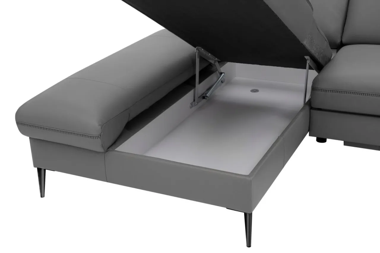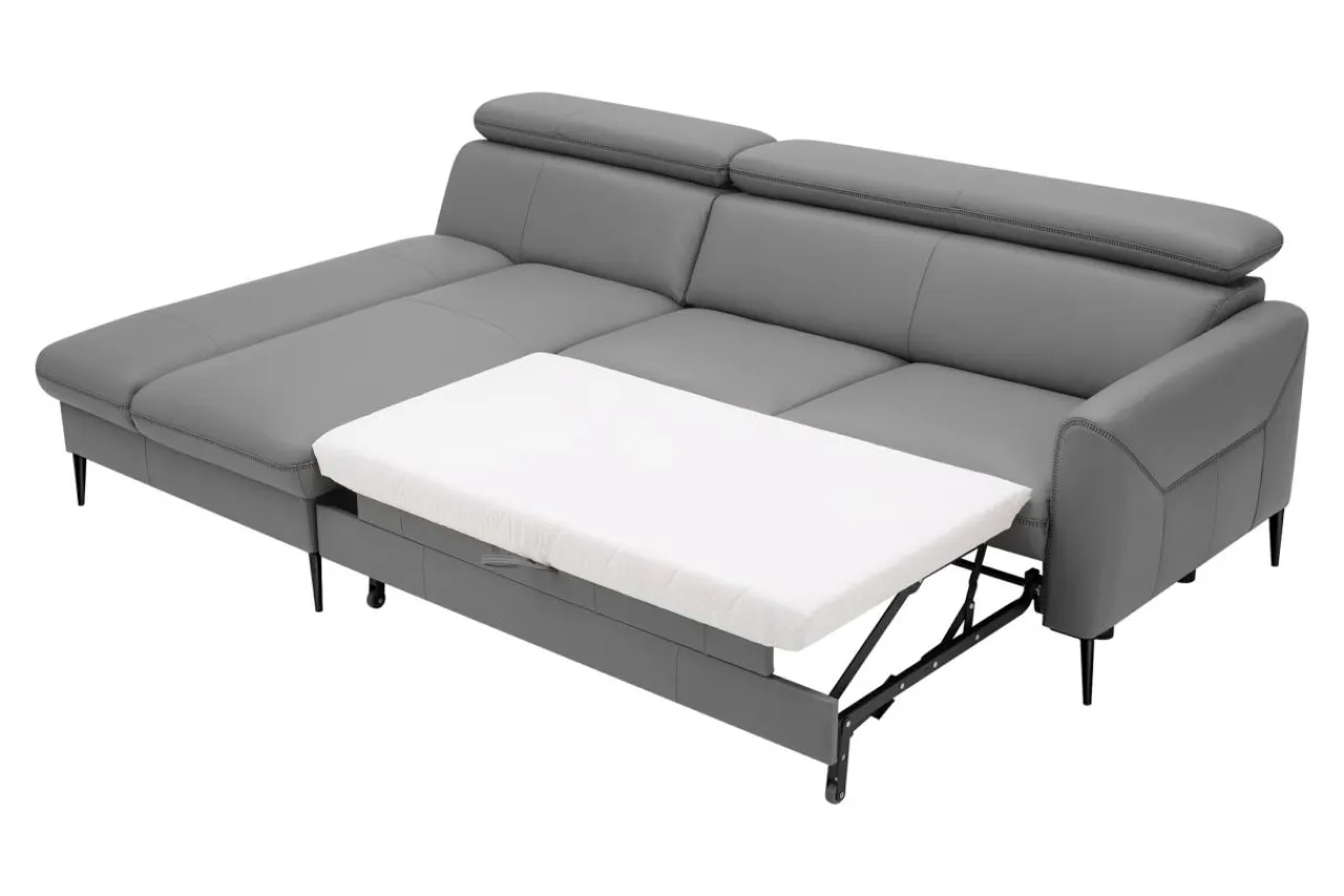- Narożnik obity jest skórą naturalną w szarym kolorze, który sprawdzi się w nowoczesnych i modernistycznych wnętrzach.