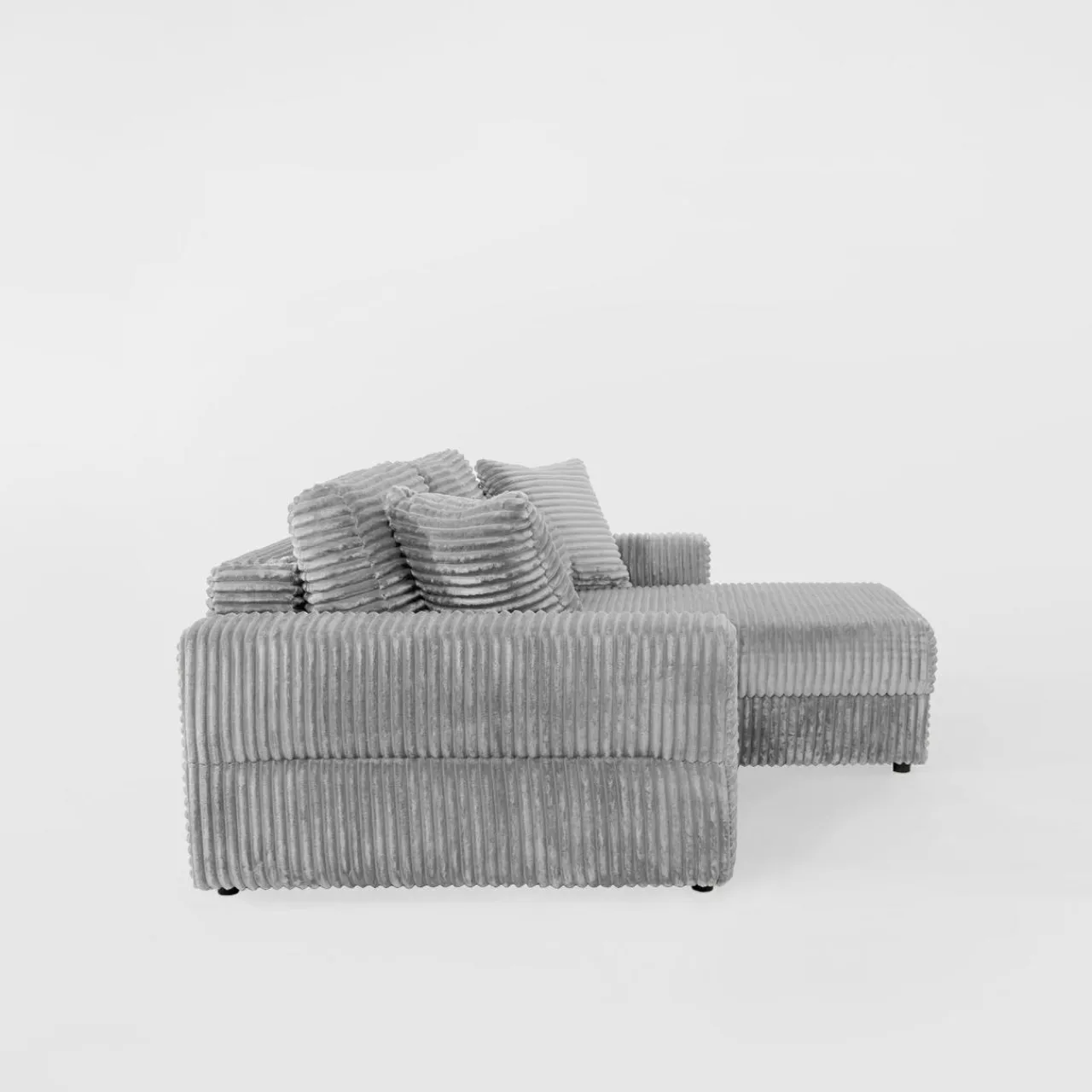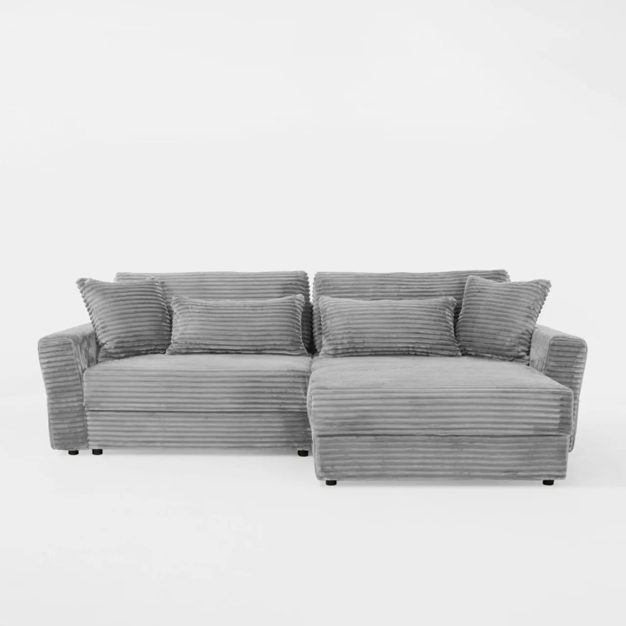- Narożnik pokryto przyjemnym w dotyku sztruksem – poczujesz przyjemne otulenie podczas picia porannej kawy lub popołudniowej drzemki.