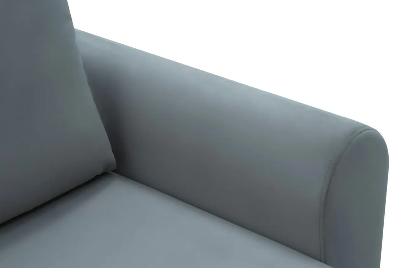 Pluszowa tkanina JASMINE odbija światło, dzięki czemu szary narożnik w zależności od nasłonecznienia przybiera odcień od grafitowego po szary z nutą niebieskiego.
