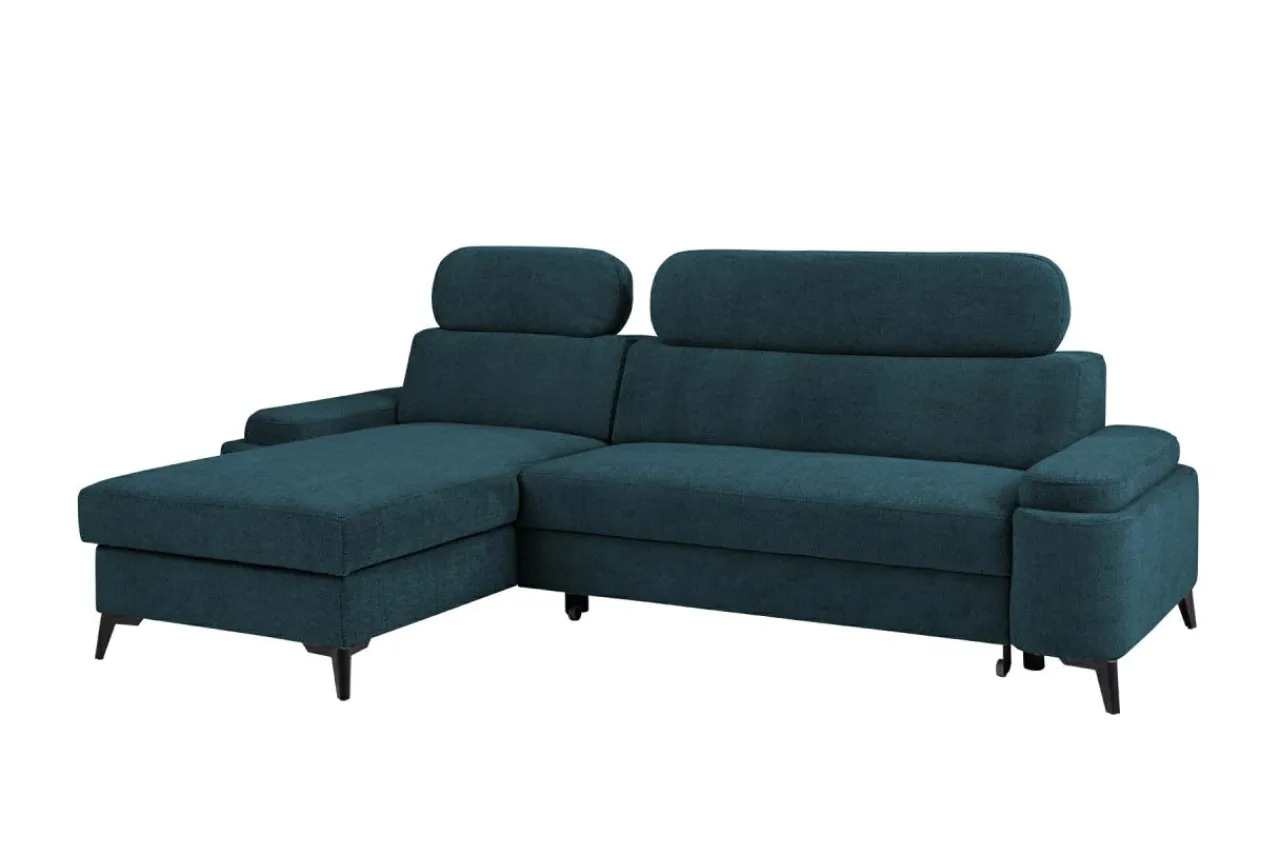 - Narożnik posiada 2 regulowane zagłówki, które dopasujesz do wzrostu Twoich gości. Nawet wysokie osoby wygodnie rozgoszczą się w Twoim salonie – wystarczy podnieść zagłówek.