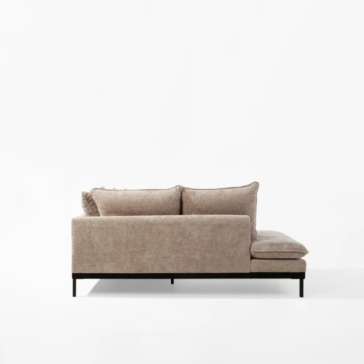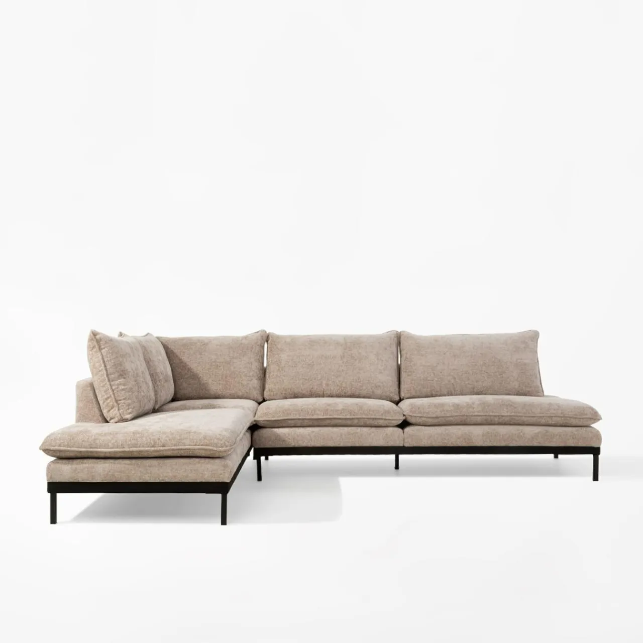 Narożnik LAULER nie posiada podłokietników, dzięki czemu ugościsz na nim więcej gości. Każdy znajdzie wygodną przestrzeń dla siebie – siadając na brzegu, środku lub wyciągając nogi na otomanie.
