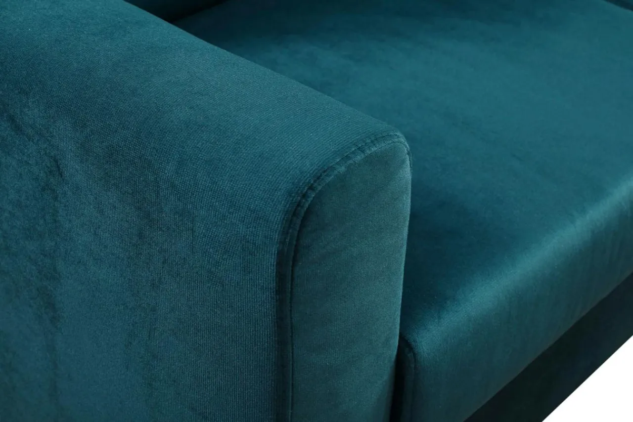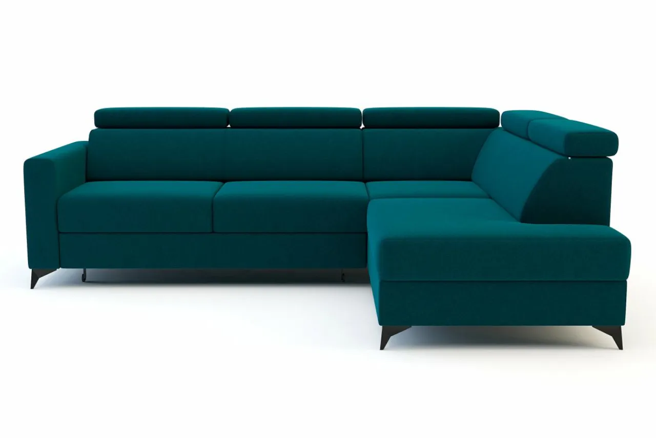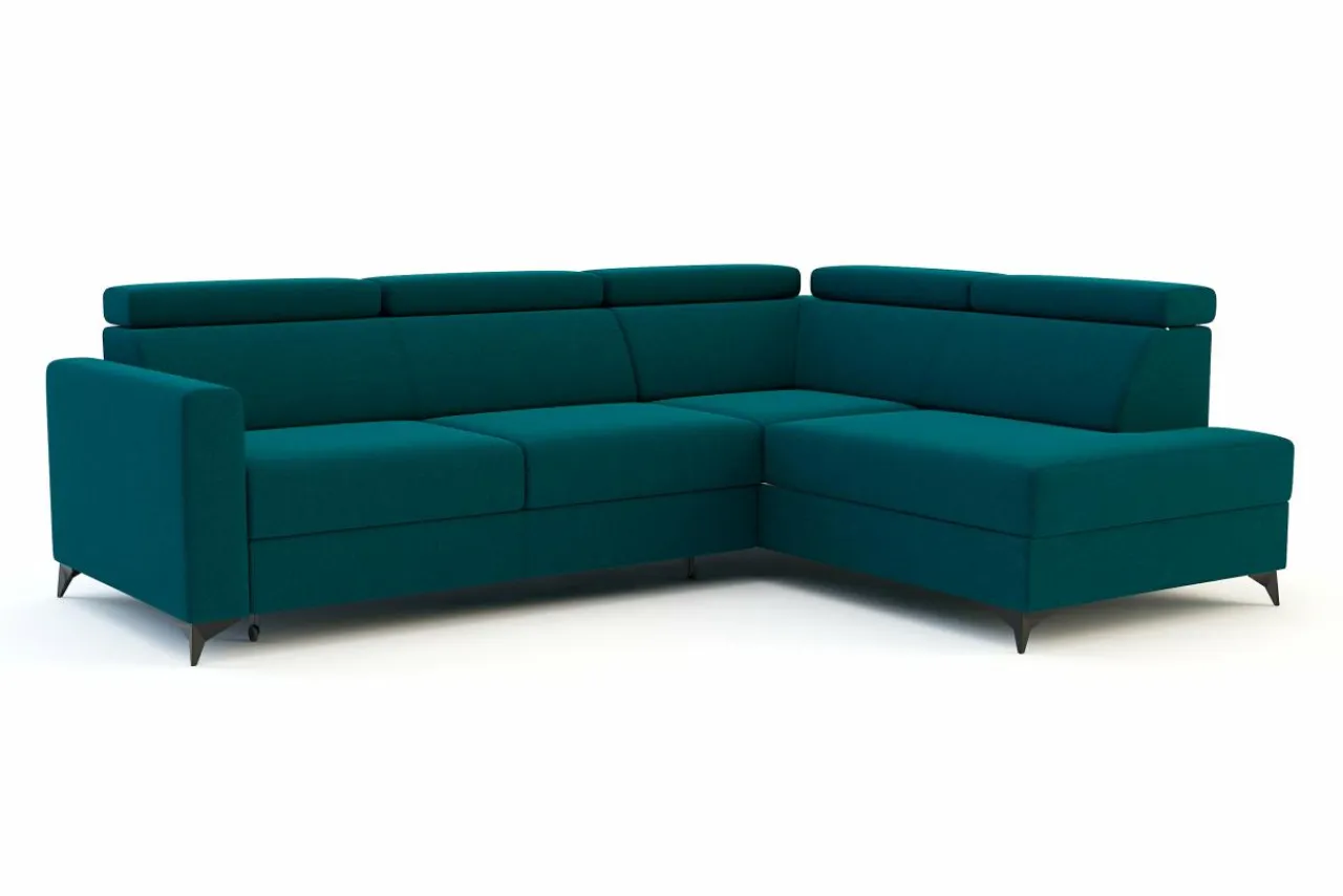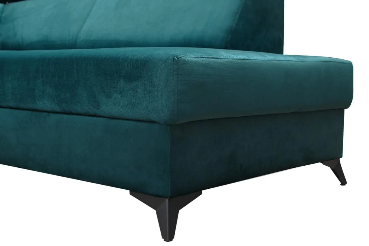 - wysokie nóżki mebla – metalowe, czarne, ustawione pod lekkim skosem sprawiają, że bryła narożnika jest wizualnie lżejsza i lepiej komponuje się z nowoczesnym wystrojem wnętrza