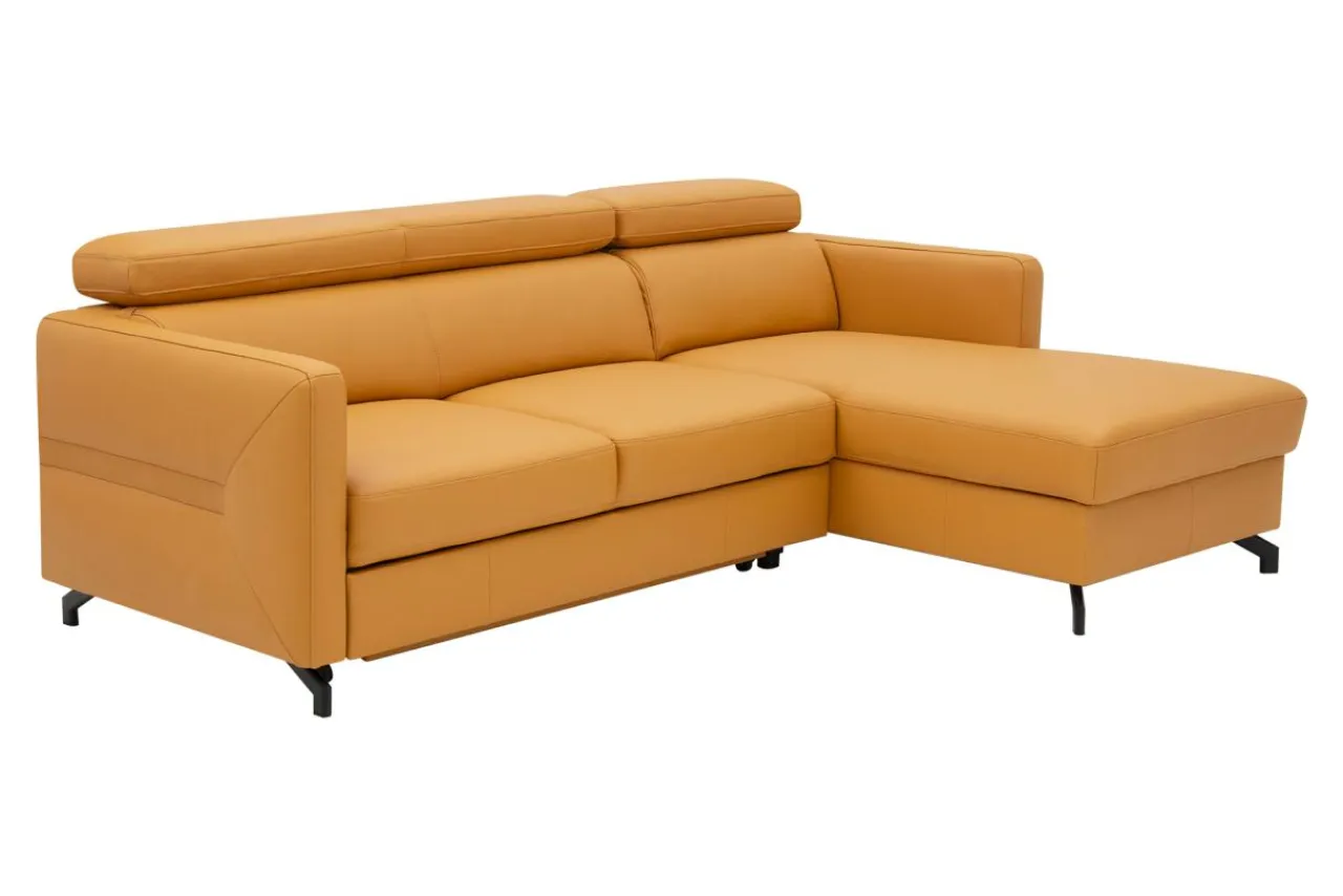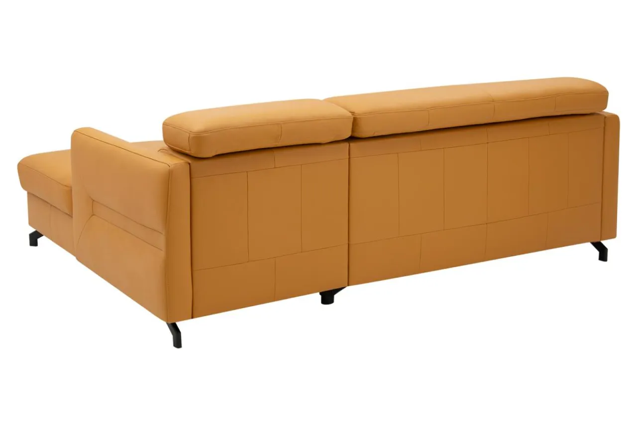 - Narożnik obity jest skórą naturalną w pomarańczowym kolorze.