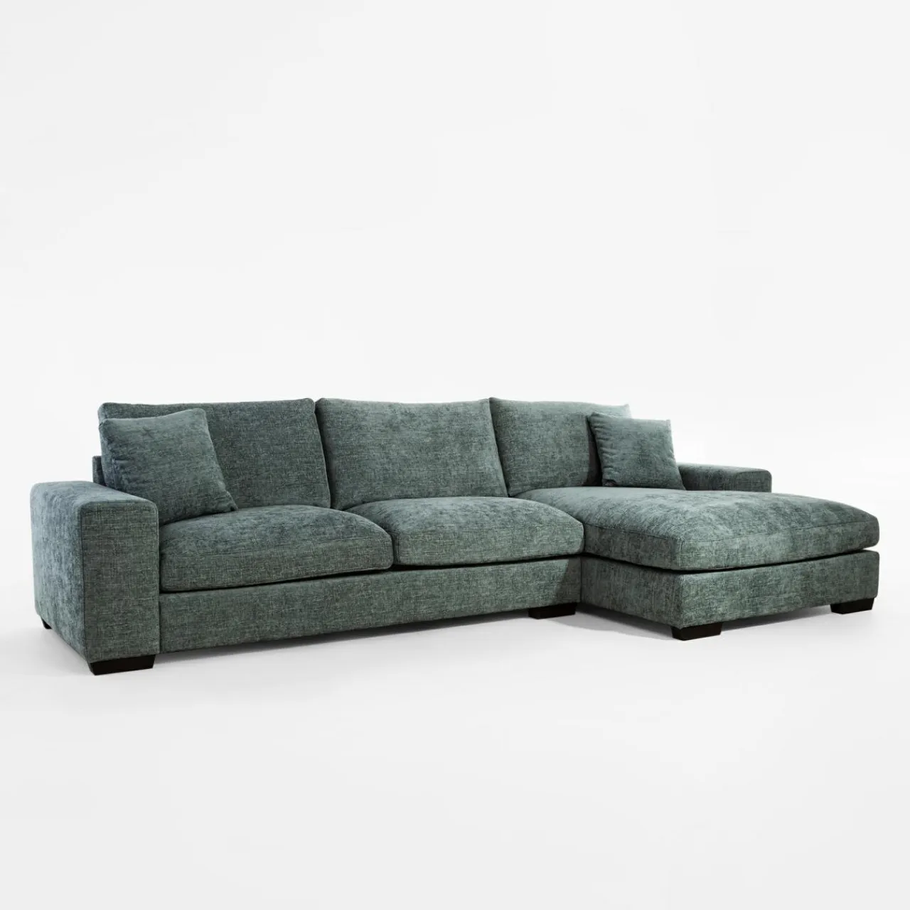 Narożnik TREVO cechuje prosty minimalistyczny design, który wpasuje się w nowoczesne aranżacje. Szerokość narożnika wynosi 342 cm, więc masz pewność, że będzie dobrze się prezentował w dużym pomieszczeniu.