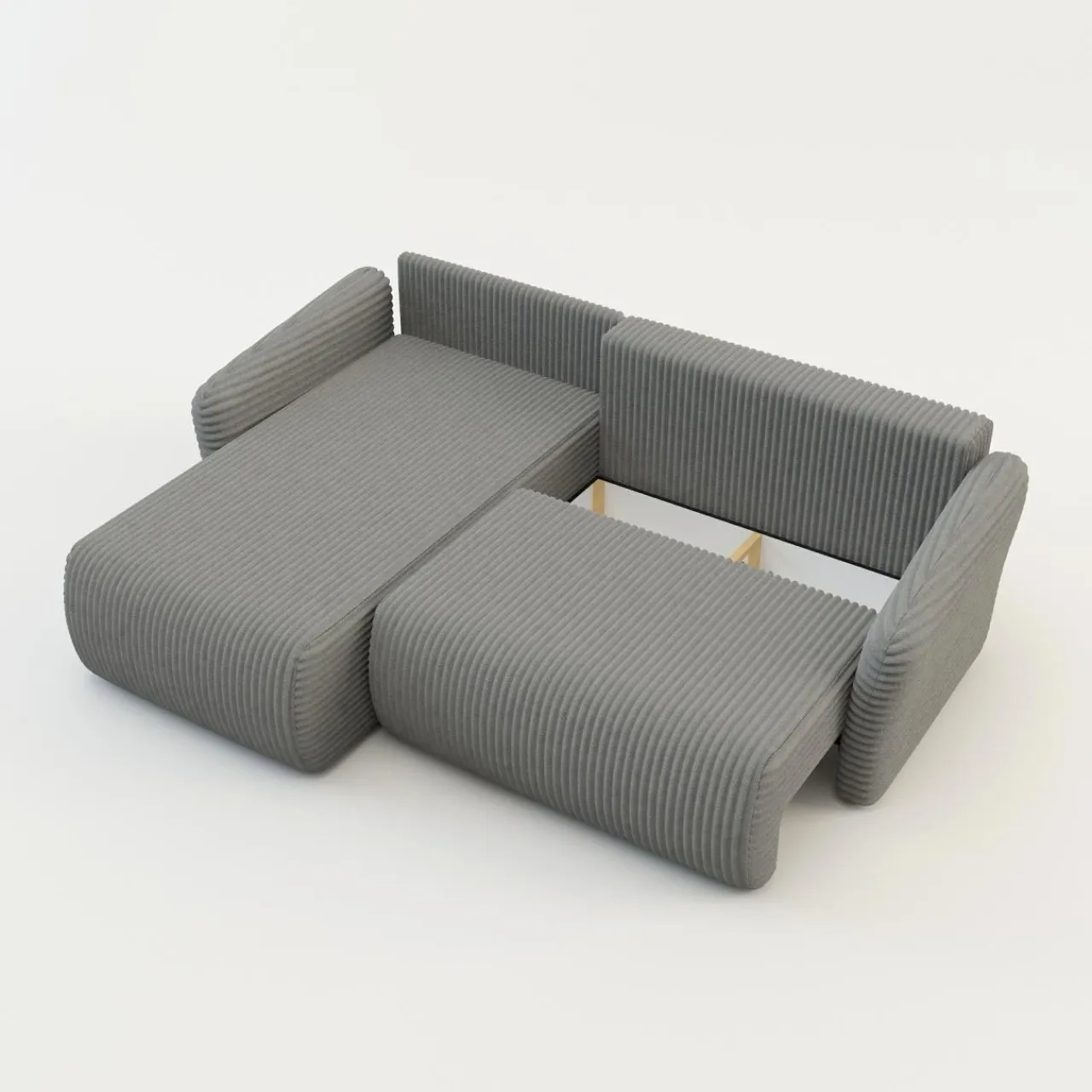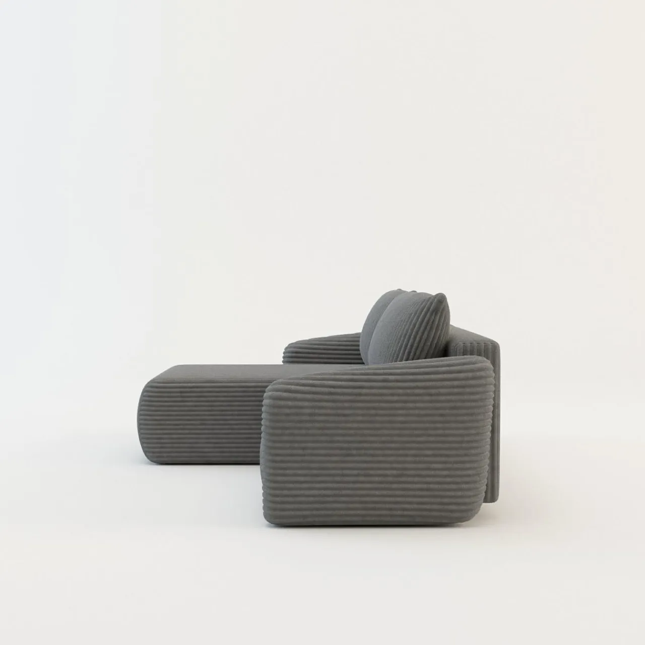Po południu na drzemkę czas! Puszysty sztruks narożnika MORRI przyjemnie Cię otuli, gdy przypadkiem zdarzy Ci się zamknąć oczy.