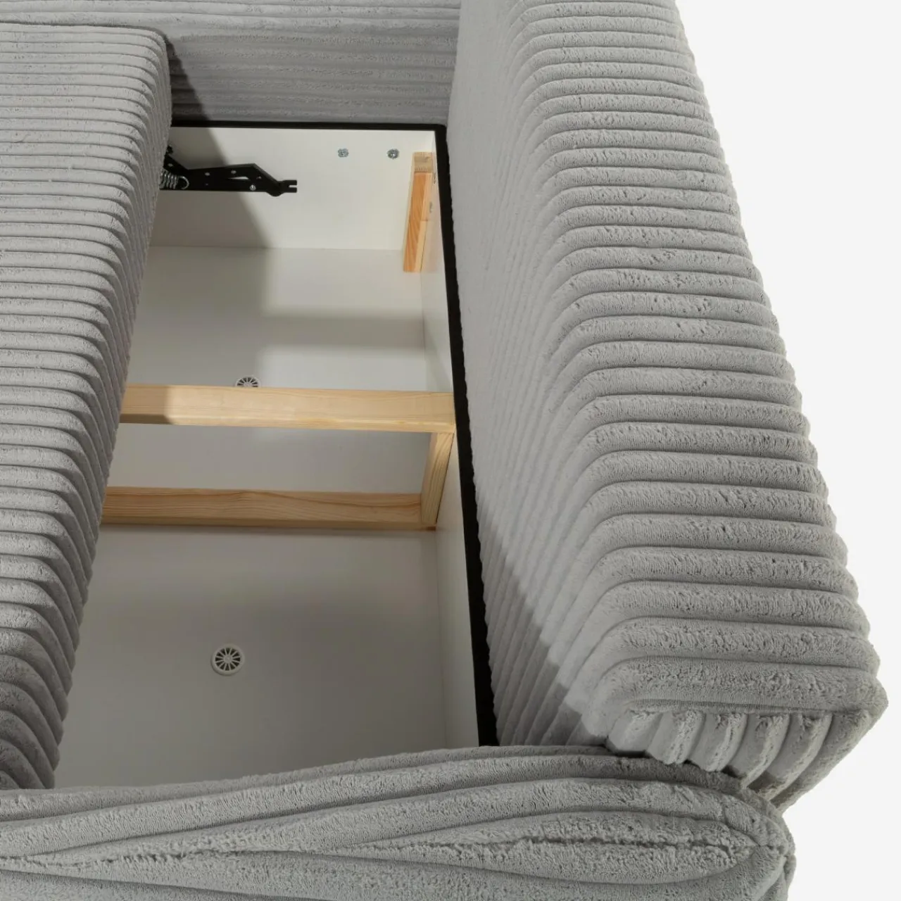 - Pojemnik pod siedziskiem to dodatkowa przestrzeń na pościel oraz inne domowe tekstylia.