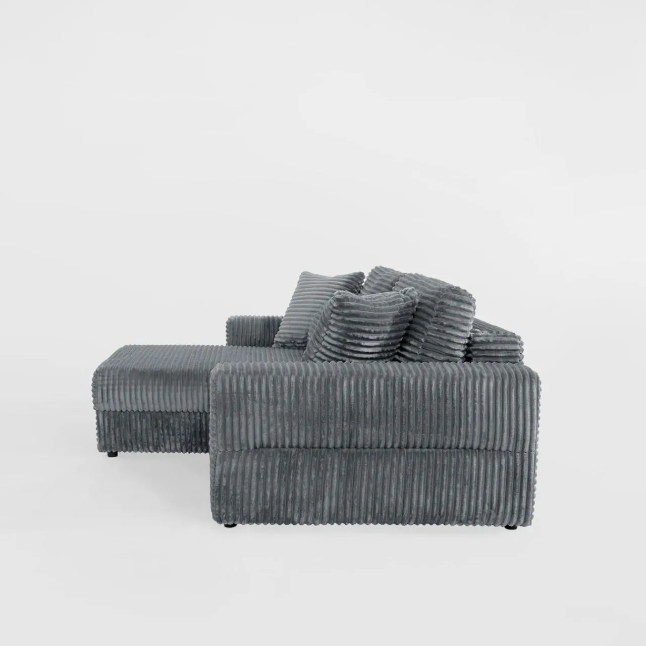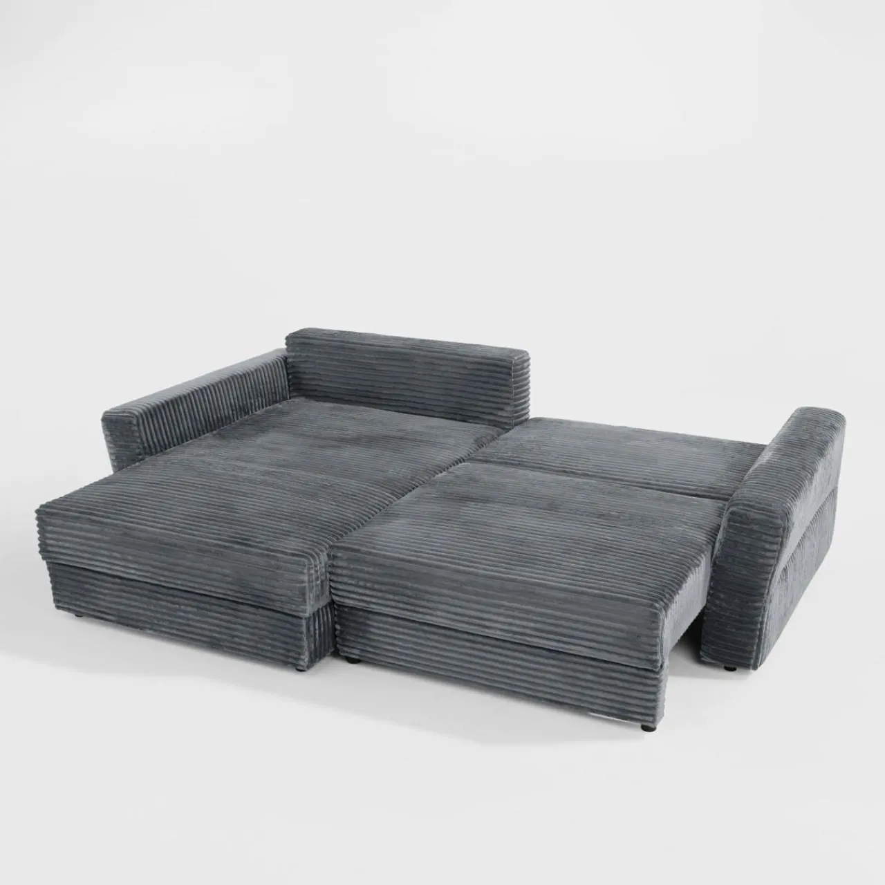 - Narożnik pokryto przyjemnym w dotyku sztruksem – poczujesz przyjemne otulenie podczas picia porannej kawy lub popołudniowej drzemki.