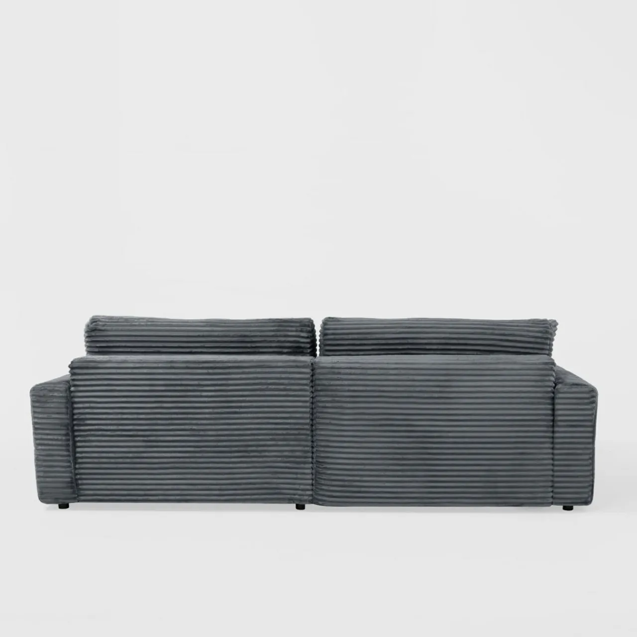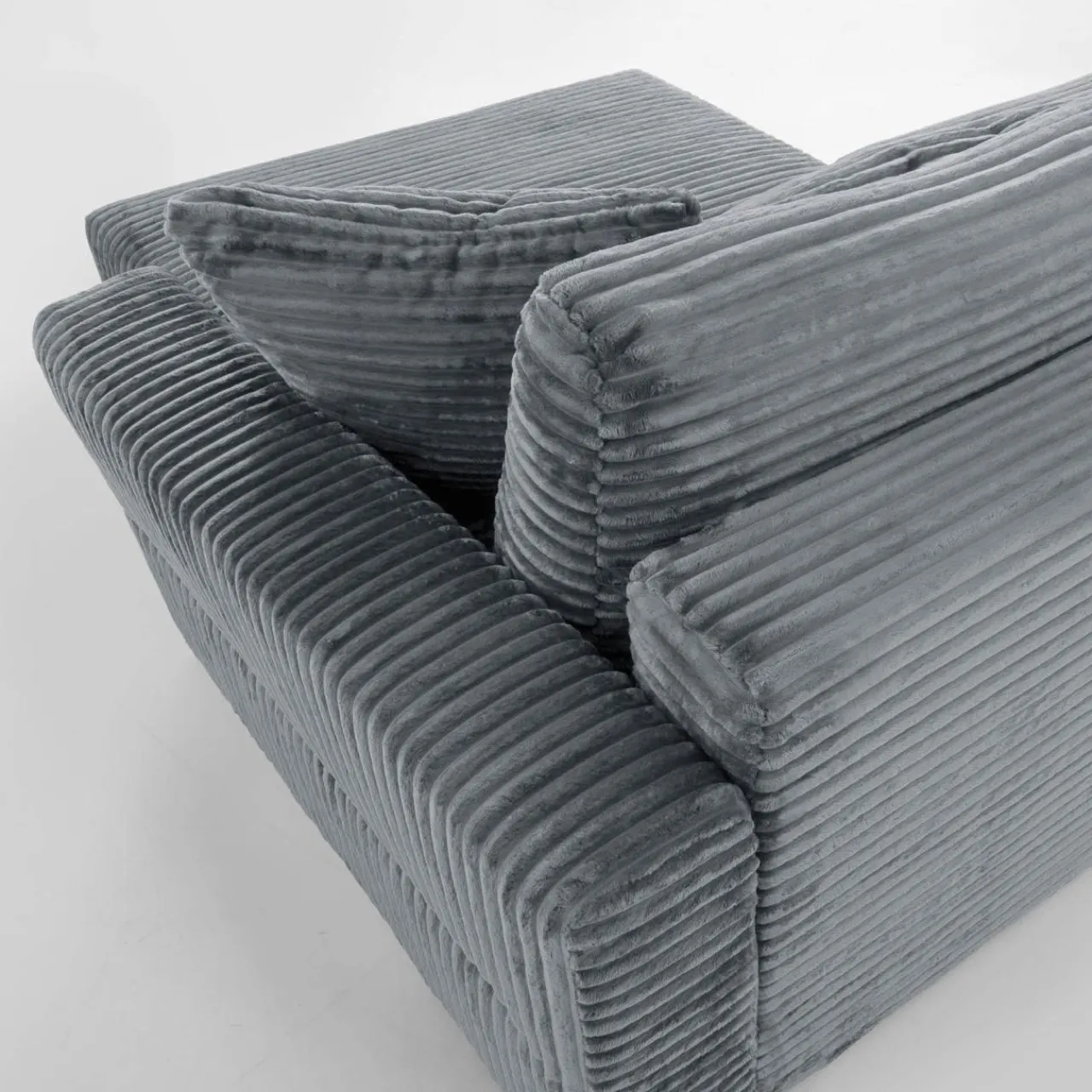 - Narożnik pokryto przyjemnym w dotyku sztruksem – poczujesz przyjemne otulenie podczas picia porannej kawy lub popołudniowej drzemki.