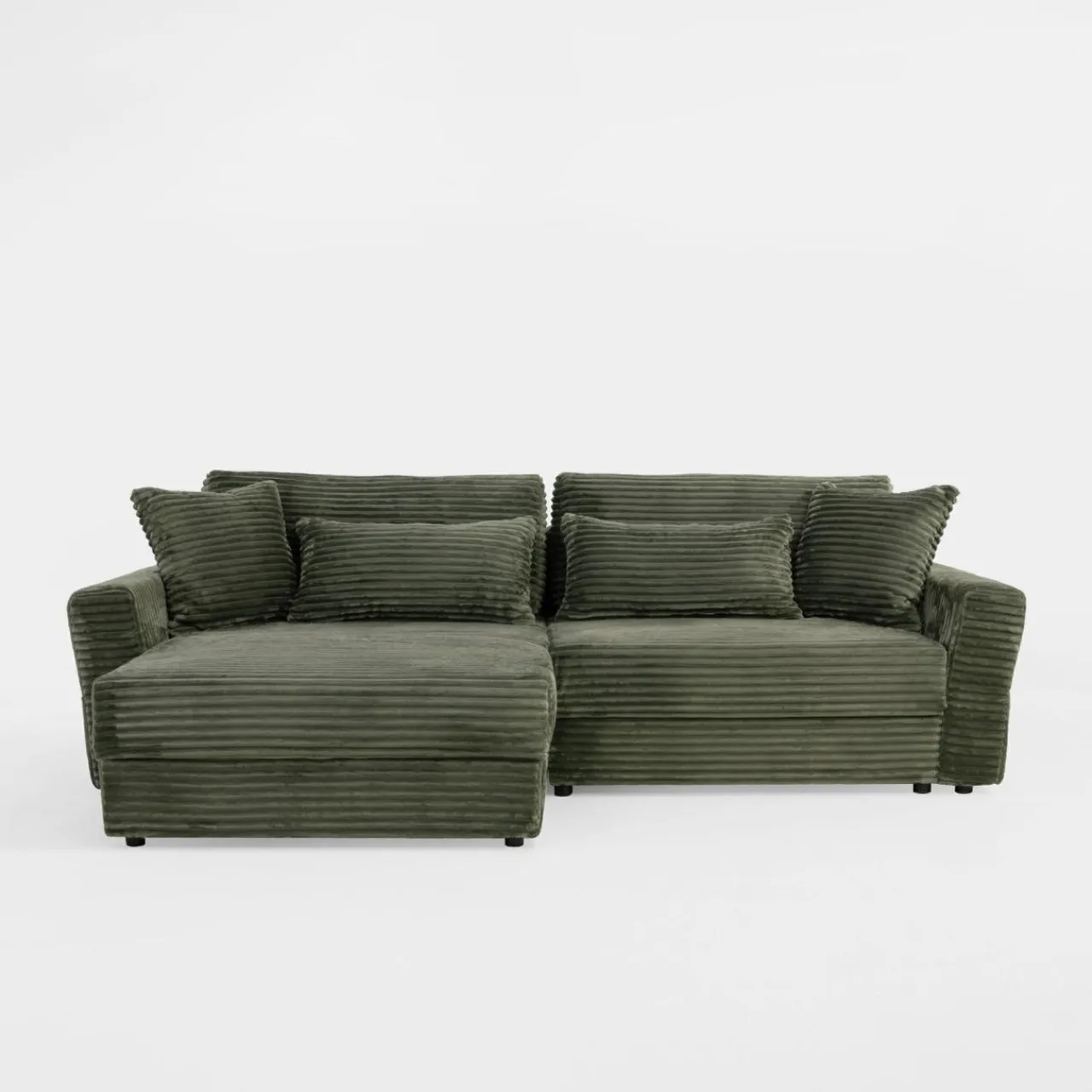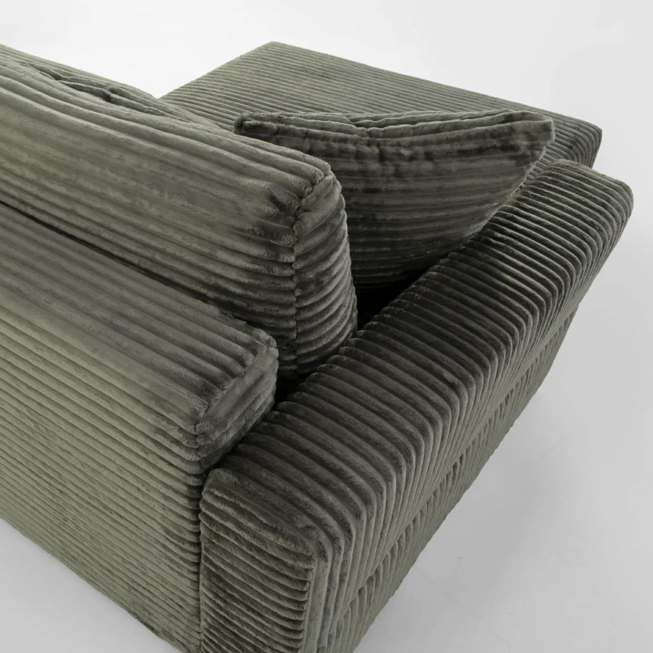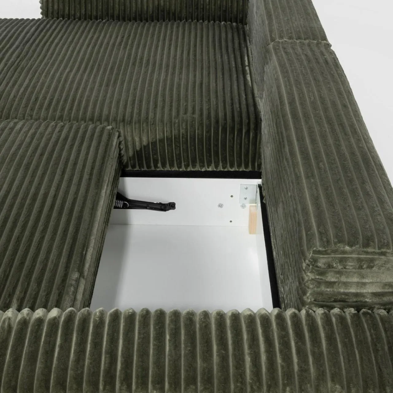 - Narożnik pokryto przyjemnym w dotyku sztruksem – poczujesz przyjemne otulenie podczas picia porannej kawy lub popołudniowej drzemki.