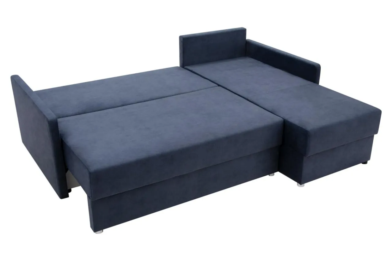 - Narożnik posiada system rozkładania DL: zdejmij poduchy, wysuń siedzisko do przodu i złóż zagłówek.