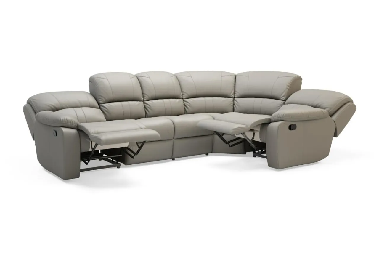 Elementy, które są w największym stopniu narażone na przetarcia, czyli siedzisko i oparcie, zostały pokryte skórą naturalną. Pozostała część mebla obito skórą ekologiczną o identycznym wybarwieniu w odcieniu szarości.