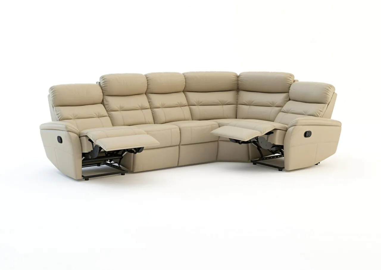Narożnik posiada dwie niezależne funkcje relaks, z rozkładanymi podnóżkami i siedziskiem, pozwalając na zajęcie półleżącej pozycji. Narożnik wykończono w tzw. miksie, który polega na łączeniu skóry naturalnej na miejscach widocznych i narażonych na ścieranie, na które skóra jest odporna. W miejscach mniej widocznych i nie narażonych na uszkodzenia mechaniczne znajduje się skóra ekologiczna w tym samym kolorze i fakturze. Nie sposób ich odróżnić na pierwszy rzut oka, narożnik prezentuje się bardzo dobrze, a dzięki zastosowaniu miksu jest przystępniejszy cenowo.