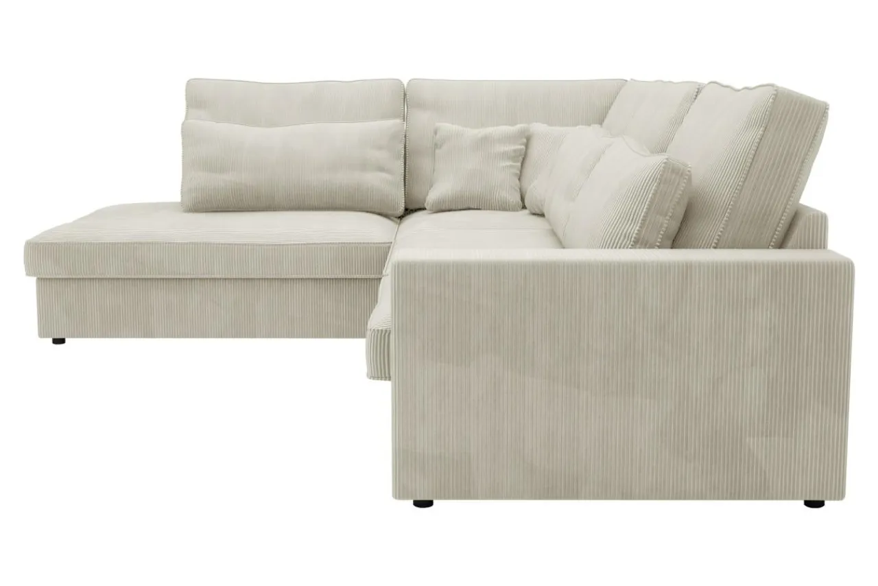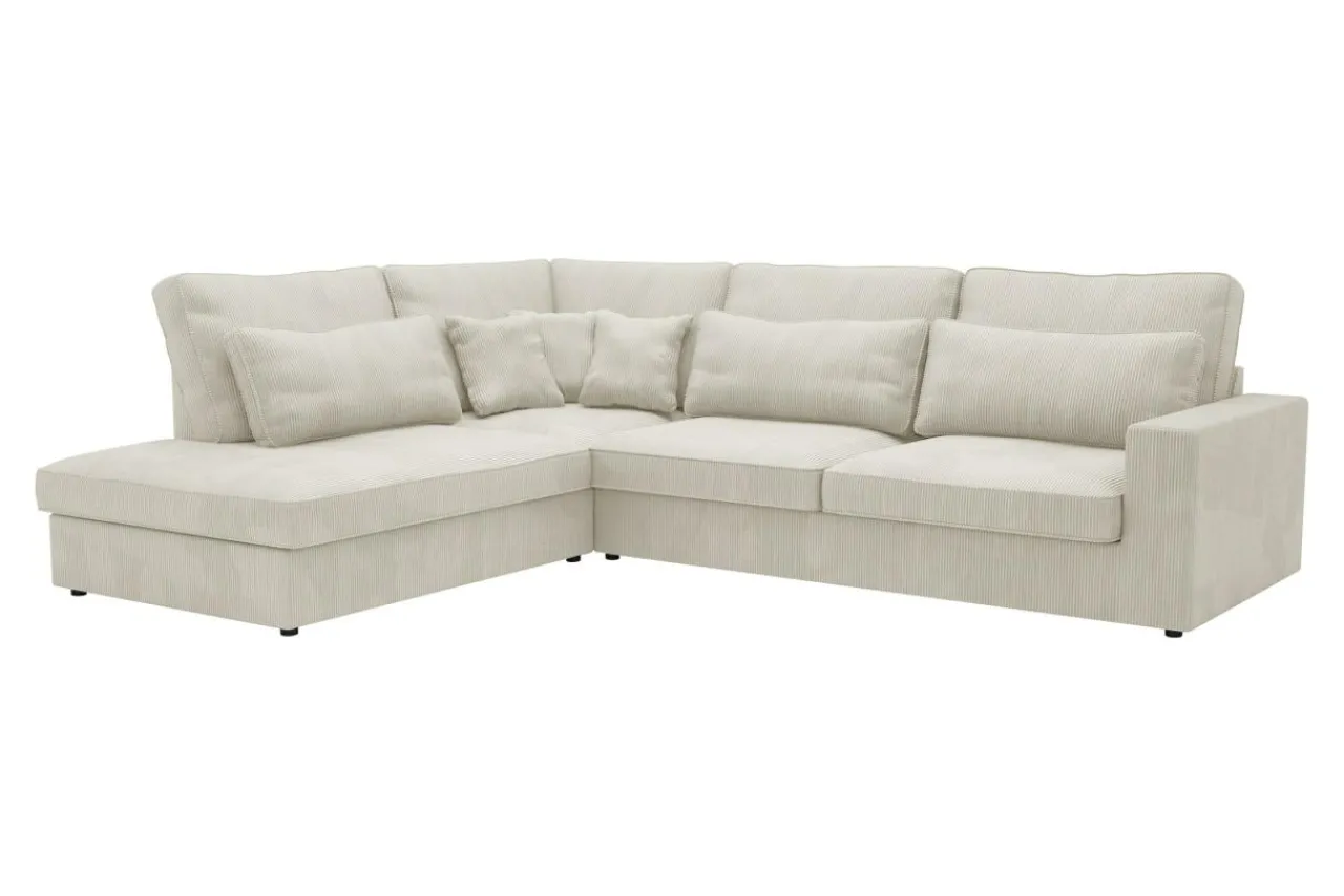 Narożnik COAST jest bogato wyposażony w poduszki – 5 dużych poduch oparciowych, 3 duże lędźwiowe i 3 mniejsze dekoracyjne.