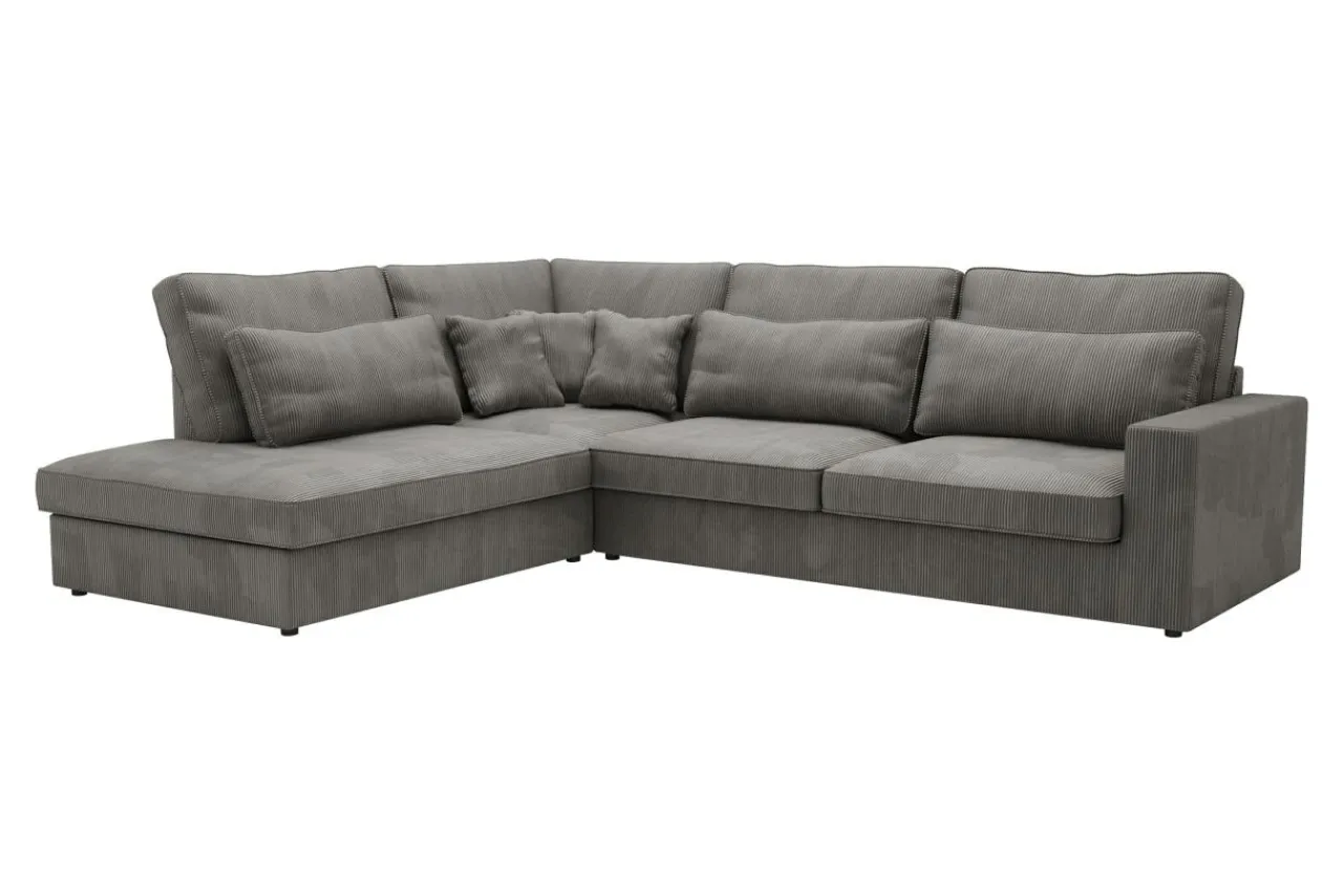 Narożnik COAST jest bogato wyposażony w poduszki – 6 poduch oparciowych, 3 lędźwiowe i 3 dekoracyjne.