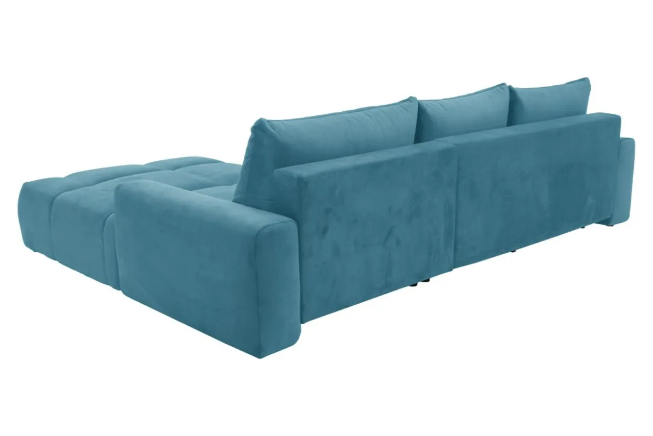 - Welurowa tkanina ELEMENT, którą obito narożnik, jest miękka w dotyku i posiada właściwości water blocked.