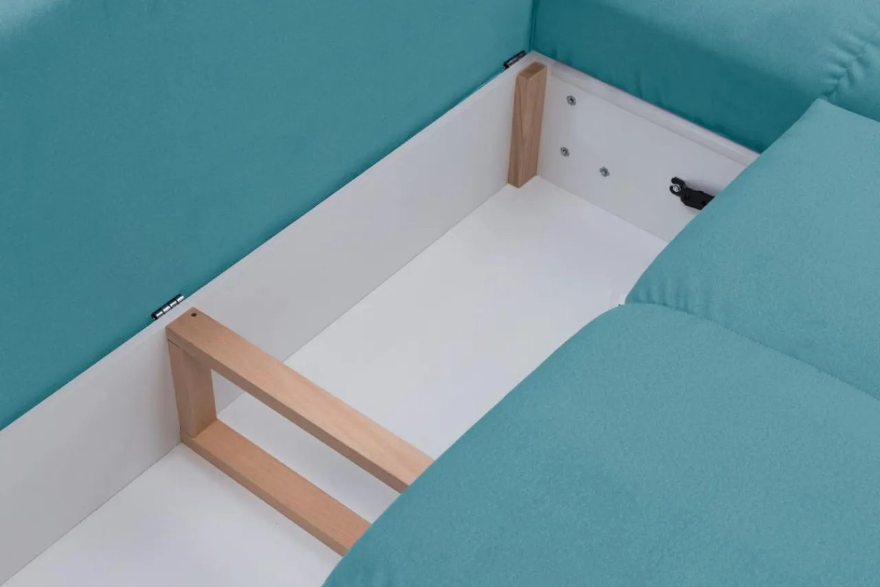 - Pojemnik na pościel znajduje się pod siedziskiem, więc możesz wyciągnąć pościel w trakcie rozkładania łóżka.