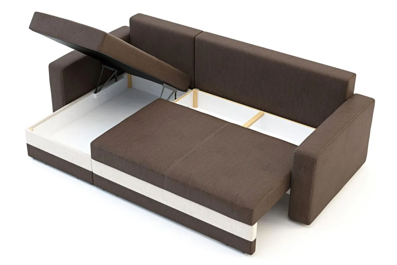 Duży schowek na pościel znajduje się w tzw. otomanie, bez problemu zmieści komplet pościeli.