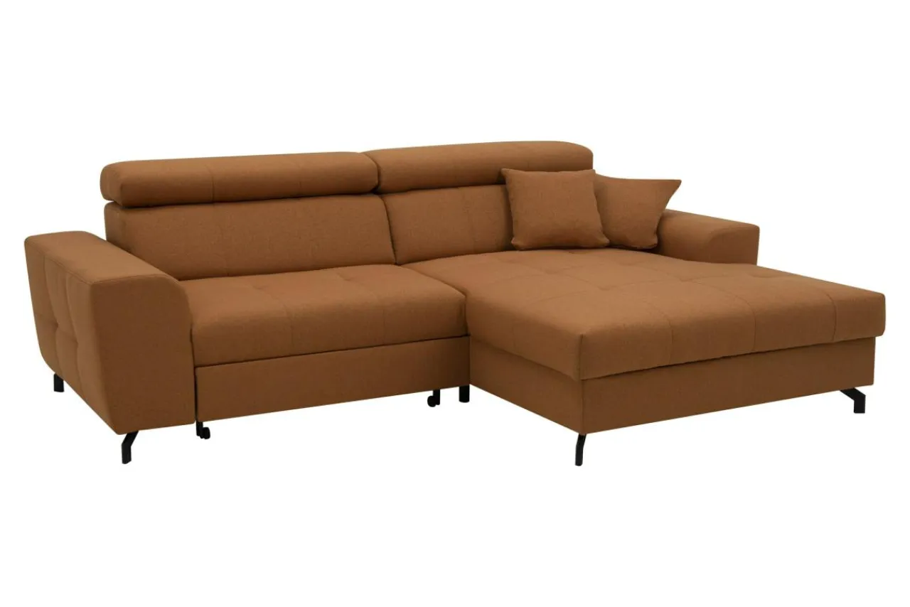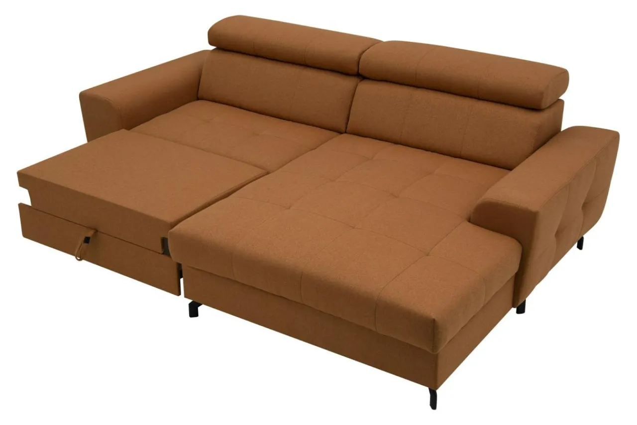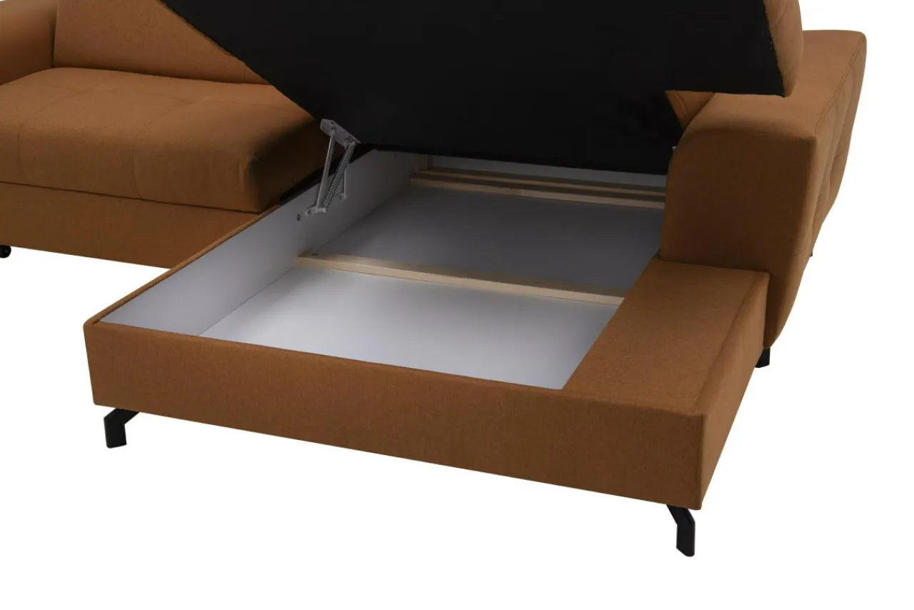 Ciepły – rudy kolor narożnika ROSSI wyróżni się na tle szarych ścian. W stonowanych pomieszczeniach z drewnianymi meblami, narożnik ROSSI stanowić będzie akcent energetyczny.