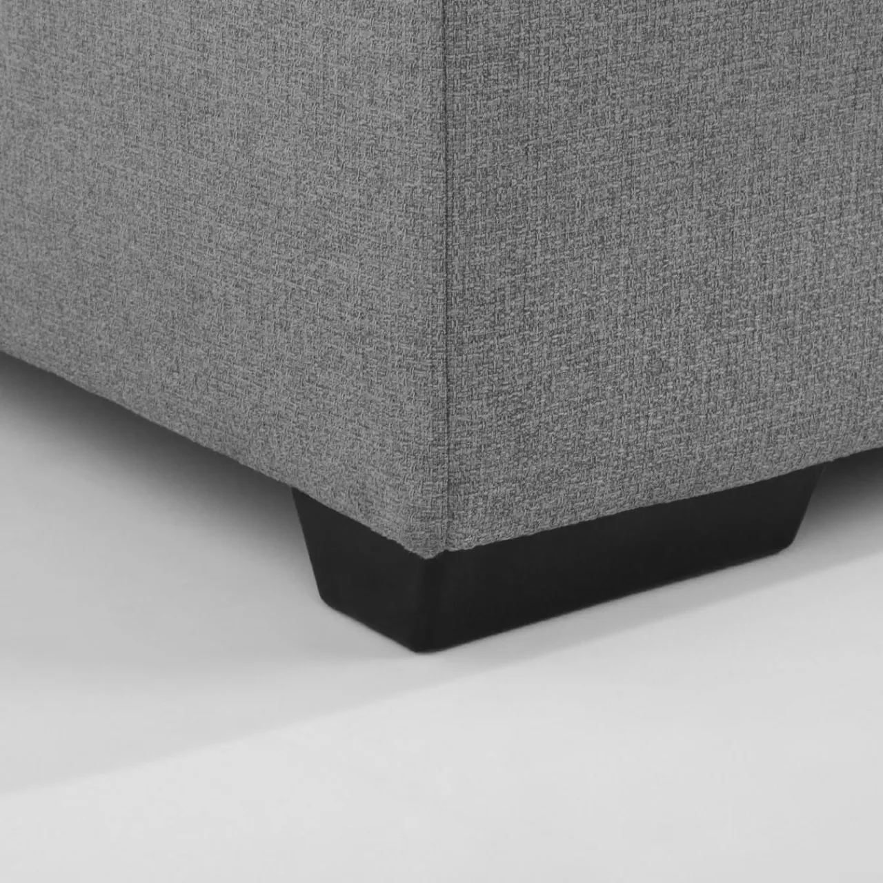 - Narożnik pokryto plecionką BARREL. Materiał cechuje się przeplataniem nitek w jasnym i ciemnym odcieniu szarości, co daje ciekawy efekt głębi.