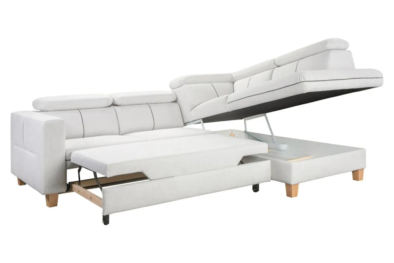 W bocznej części narożnika znajduje się pojemnik. Schowaj w nim pościel, kole lub inne tekstylia i zaoszczędź miejsce w szafie.